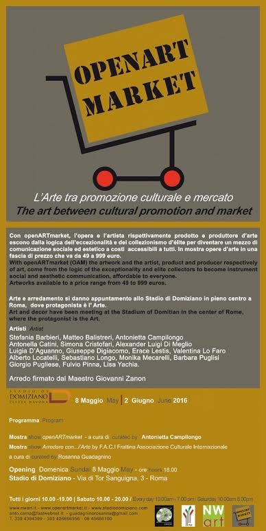 Domenica 8 maggio 2016 un doppio appuntamento a Roma: la presentazione della mostra Arredare con… l’Arte dell’Associazione Frattina Associazione Culturale Internazionale a cura di Rosanna Guadagnino ed OpenARTmarket, a cura di Antonietta Campilongo, fino al 2 giugno 2016 presso lo Stadio di Domiziano – Via di Tor Sanguigna 3 (Piazza Navona) a Roma.