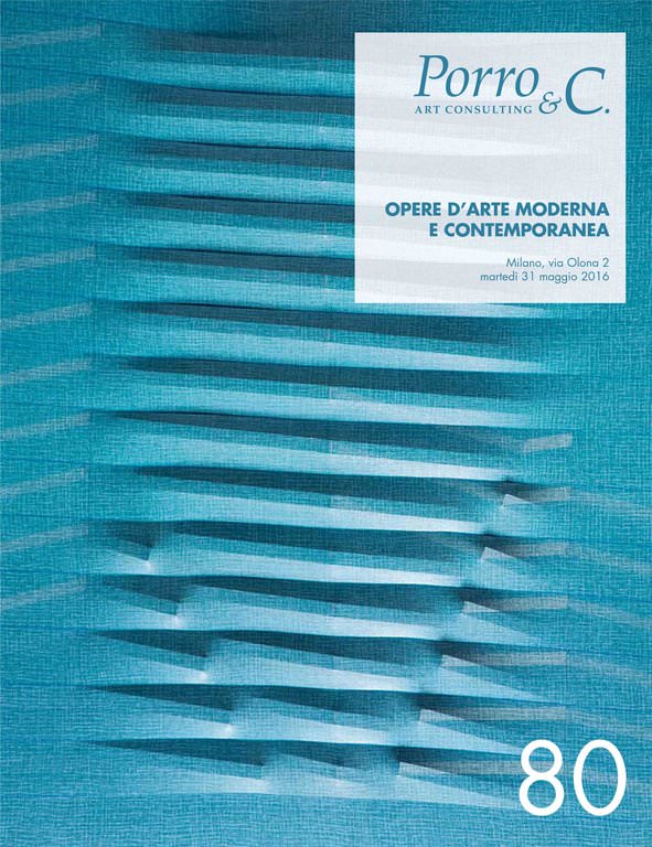 Di particolare interesse troviamo poi tre opere di Christo, artista che proprio in giugno inaugurerà un nuovo e grandioso progetto chiamato “The Floating Pier” sul lago di Iseo. Un’altra imponente opere da segnalare è una grande estroflessione di Agostino Bonalumi intitolata “Azzurro” che con le sue grandi fessurazioni di luce che increspano la tela ricorda quasi la superficie del mare. Azzurro, 1989, tempera vinilica su tela estroflessa, cm 130x162, stima: (€ 130.000-150.000)