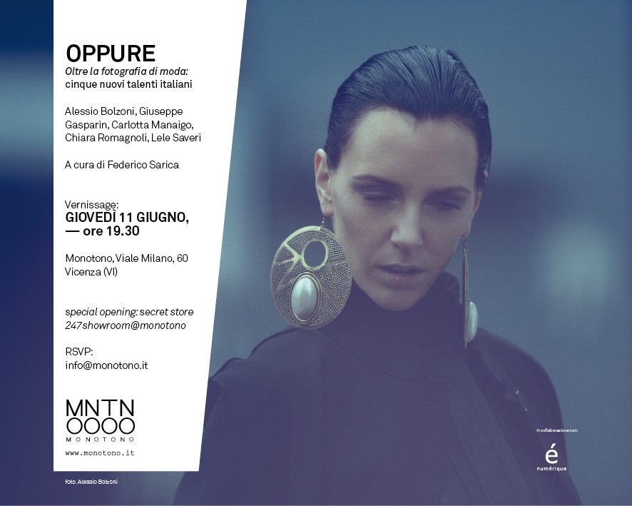 La mostra sarà la prima tappa di Oppure, un laboratorio e un percorso sui linguaggi legati alla moda e alla comunicazione che le gira intorno, che si svilupperà nei prossimi mesi attraverso mostre, incontri, riflessioni, progetti e pubblicazioni. Questa prima collettiva, nello specifico, mostra il profilo professionale e mette in risalto la personalità di cinque fra i più promettenti fotografi italiani di moda, ritrattistica e pubblicità delle ultimissime generazioni. Il fine non è l’opera d’arte ma fare un lavoro di selezione e di mappatura di quei talenti che devono tornare ad essere con urgenza patrimonio condiviso e valore aggiunto per l’industria editoriale e per il sistema moda italiani.