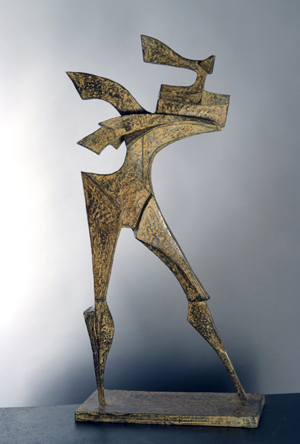 La sintesi volumetrica pone l’attenzione sull’analisi plastica e spaziale, che deriva da una concezione ar-chitettonica di progetto-idea che sostiene il successivo sviluppo creativo. La lezione cubista, con le sue rivoluzioni grammaticali, è stata assorbita e mediata da Orazio Barbagallo attraverso una ricerca estetica che si orienta verso un’asciuttezza formale ed un ritmo lineare. L’artista supera le barriere del naturali-smo e del verismo, per indirizzarsi verso l’interpretazione della figura umana, che appare trasformata soprattutto nelle masse muscolari e nelle proporzioni. In questo sistema, che vede sostituire al vero l’immaginario, diventa importante il modo in cui viene risolta la fusione tra il singolo elemento e l’insieme, al fine di legare in maniera coerente il tutto. Per quanto riguarda questo aspetto, lo scultore riesce a dominare la composizione con estrema naturalezza e lucidità. Anche il ruolo della luce appare determinate. Per l’artista la percezione espressiva del corpo plastico è modulata dalla contrapposizione dei piani-luce e dei piani-ombra, ora volta a rendere una dominante più tesa alla creazione, ora volta a restituire di essa una visione eroica. Il gioco di commistioni tra andamenti curvi e retti dei profili, de-termina i movimenti della composizione, bilanciando ed evidenziando le varie tensioni delle masse o delle superfici. I suoi personaggi sono sempre intenti ad osservare qualcosa. Questa scelta fa si che i soggetti riescano a stabilire un rapporto con l’esterno, con l’altro da sé, che li rende partecipi di un’esistenza parallela alla nostra. Le loro sembianze richiamano alla mente un lontano passato: la mo-numentalità è la medesima della statuaria egizia, mentre l’organica astrazione ricorda i kuros della Gre-cia arcaica. Ma al passato lontano, questi misteriosi personaggi ci proiettano anche in un lontano futuro. L’umanità, per Orazio Barbagallo, pare essersi evoluta, unitasi al gene di una razza aliena giunta da un’oscura galassia.