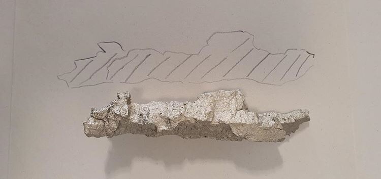 Durante alcune passeggiate lungo i crinali delle montagne di Grizzana Morandi l’artista ha ritrovato frammenti di bombe e successivamente le ha fatte cromare d’argento.