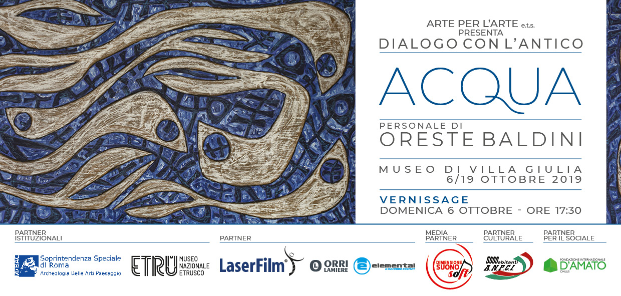 Si terrà dal 6 al 19 Ottobre 2019 al Museo di Villa Giulia a Roma “Acqua”, mostra personale di Oreste Baldini.