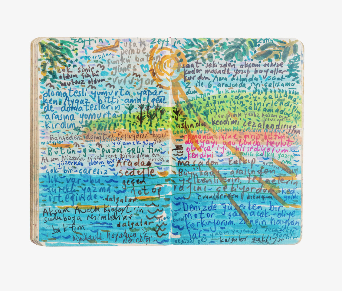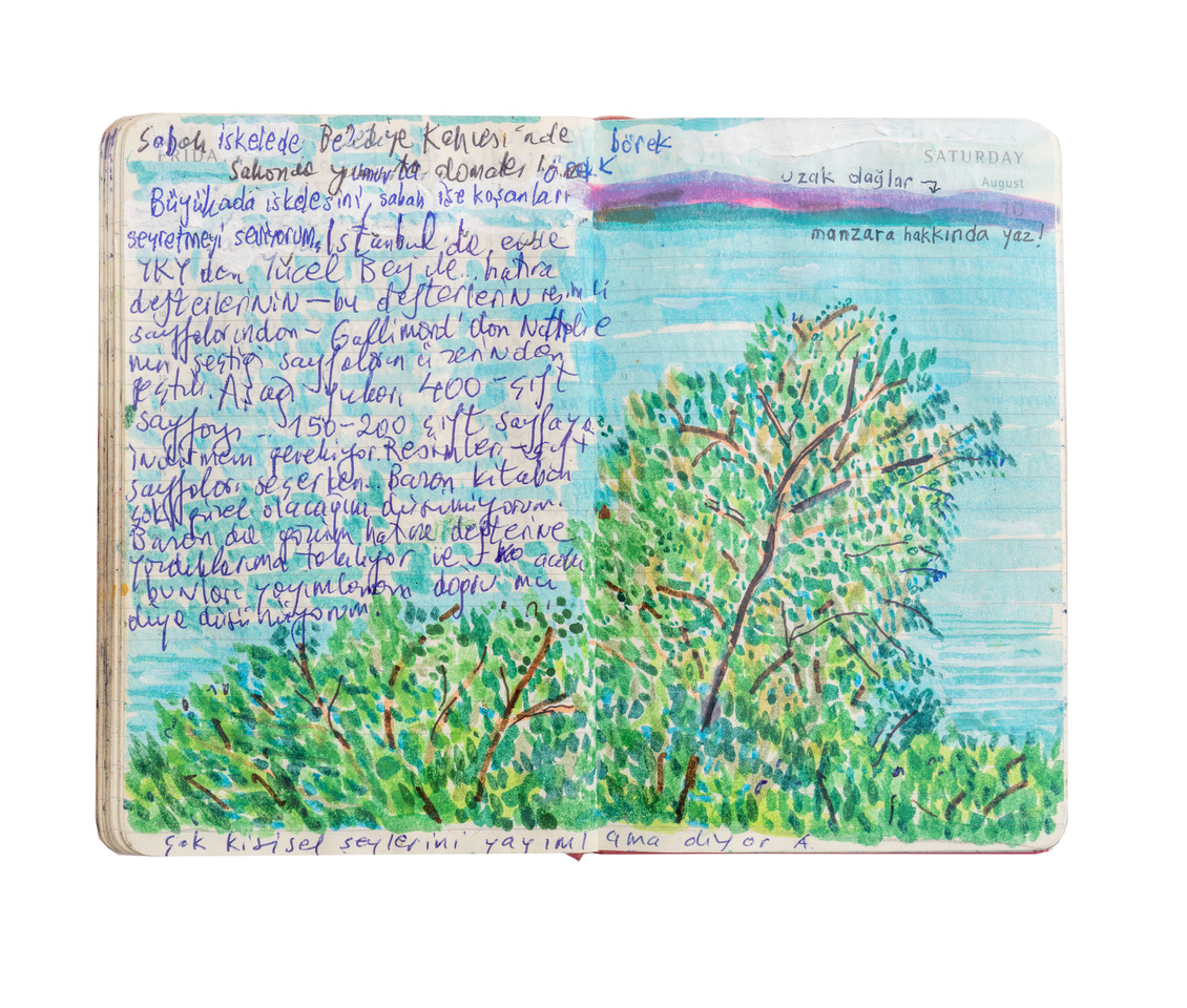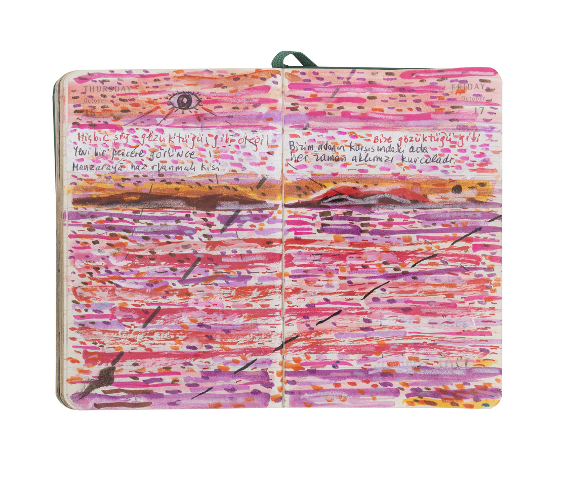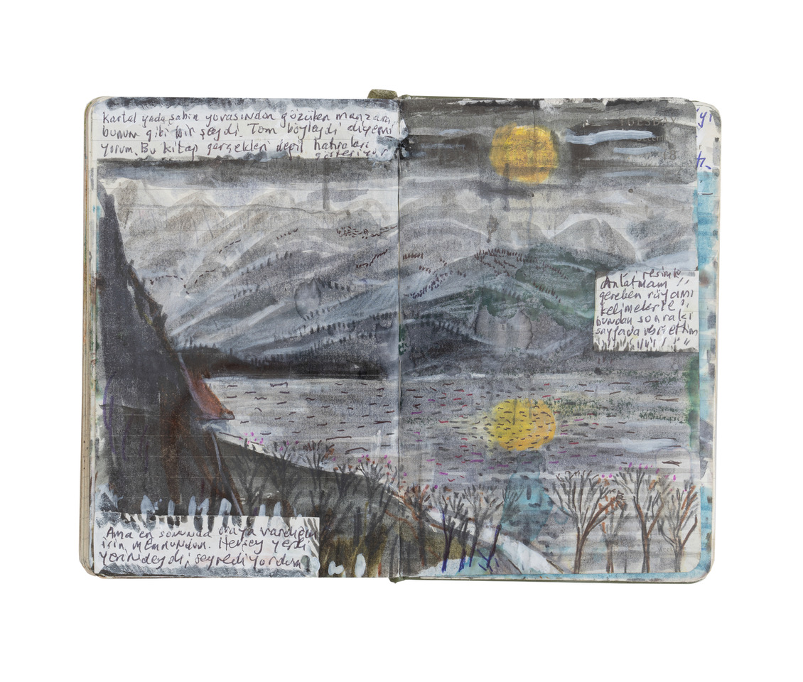Contemporaneamente alla mostra, lo scrittore turco pubblica per la prima volta con Einaudi una selezione dei suoi taccuini nel volume Ricordi di montagne lontane (in libreria dal 14 novembre. Traduzione di Margherita Botto, pp. 392, € 34,00). Il filo conduttore che, ora sotterraneo ora cristallino, si snoda tra testi e immagini e attraversa gli eventi, gli incontri, i pensieri è sempre il processo, delicato eppure inarrestabile, della creazione letteraria. I taccuini rappresentano così un vero e proprio laboratorio in cui immaginare trame e studiarne l’architettura, in un dialogo perpetuo con i personaggi dei libri che verranno.