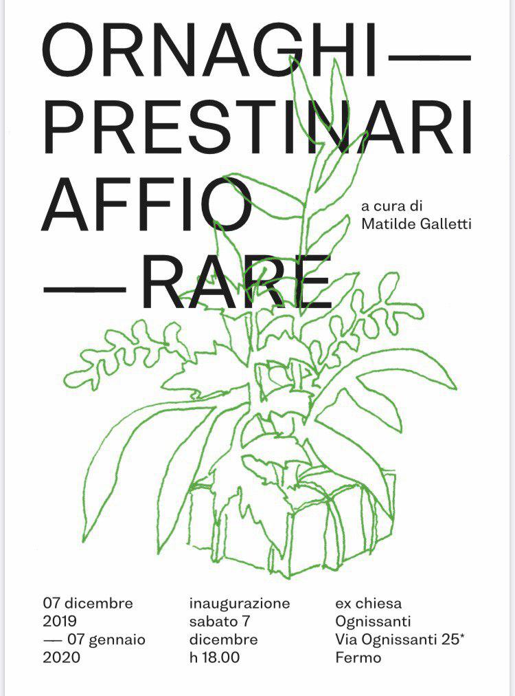 Sarà l’ex chiesa di Ognissanti a Fermo, ad ospitare la mostra del duo Ornaghi&Prestinari dal titolo “Affiorare”, a cura di Matilde Galletti: vernissage previsto per sabato 7 dicembre, alle 18.00, presentazione del progetto ore 19.00, mentre l’esposizione sarà visitabile fino al prossimo 7 gennaio 2020. Negli spazi della ex chiesa gli artisti sono intervenuti inserendo una scultura realizzata appositamente per l’occasione in collaborazione con la ditta Savelli ascensori e tre quadri.