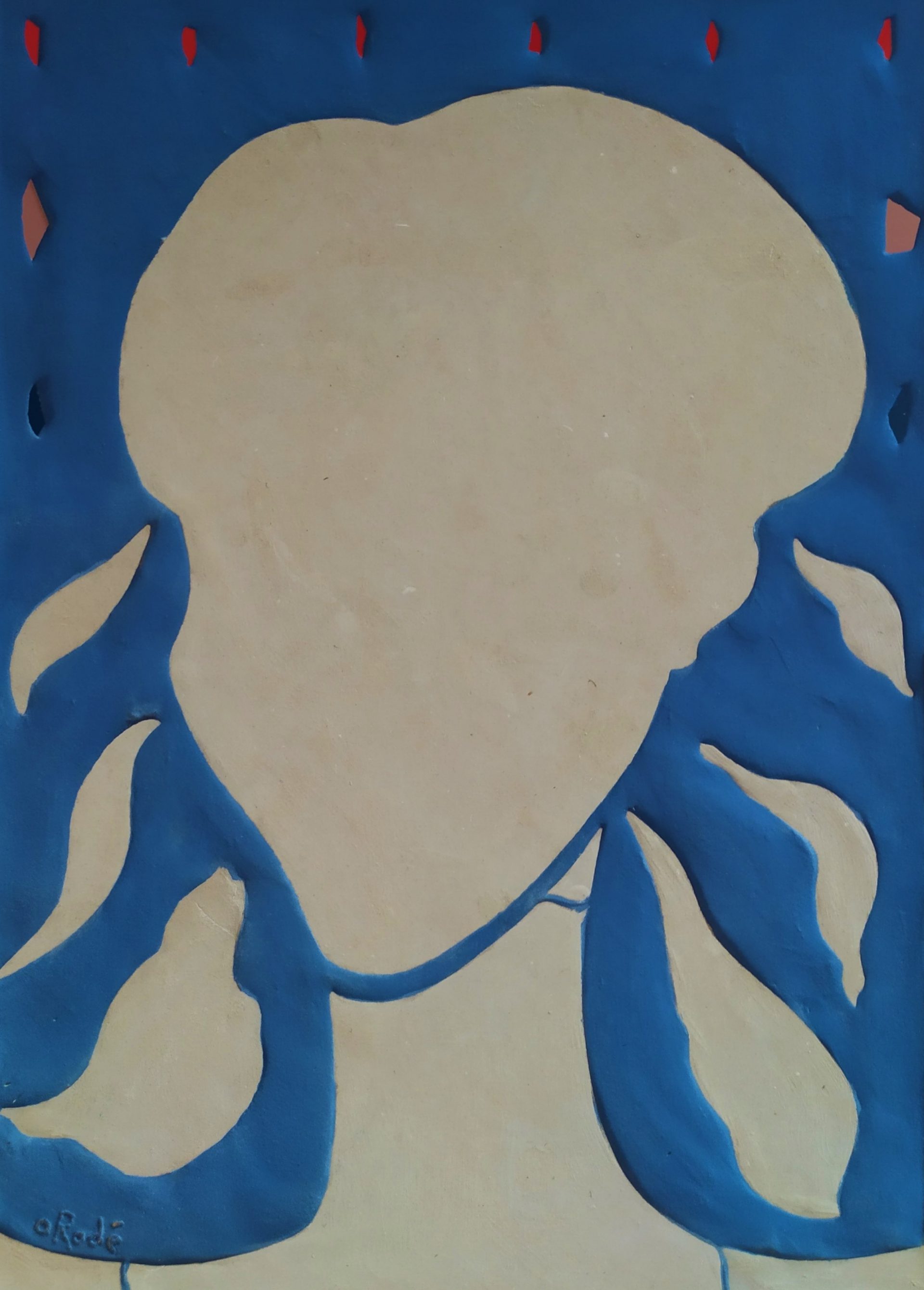 Le nuove opere di Orodè Deoro sono un omaggio alla sua terra, con uno dei materiali più caratteristici e più amati del Salento, la pietra leccese. Per secoli utilizzata in campo architettonico e scultoreo, anima e luce del barocco leccese, nelle mani dell’artista tarantino diviene materia per i suoi originalissimi mosaici. Solo il colore naturale della pietra e lo stucco azzurro, per richiamare il mare e il cielo, a dominare nelle opere, con un forte e libero rimando ai geroglifici egiziani.