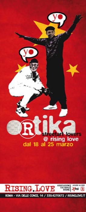 Il 18 febbraio il Rising Love dalle 21.00 presenta, Ortika street art lovers” la fan page creata su facebook dallo street artist campano Biodpi, diventata ormai luogo di scambio di idee e proposte per artisti ed appassionati di questa sempre più acclamata corrente creativa.