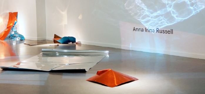 Entrando nella sala espositiva si incontra l’installazione Strategie per una comunicazione Æfectiva di Anna Irina Russell. La potenzialità rappresentata dalla luce viene esplorata da Anna Irina Russell in funzione dei meccanismi di comunicazione/potere spesso appartenenti ad apparati militari. Meccanismi riscontrabili anche nel campo delle esplorazioni spaziali che oggi godono di una rinnovata attenzione e i cui elementi portanti sono la tecnologia ed il denaro investito e che vanno a cambiare la prospettiva romantica dell’esplorazione spaziale come desiderio di condivisione del sapere e incontro con creature aliene, tanto sostenuto del secolo precedente.