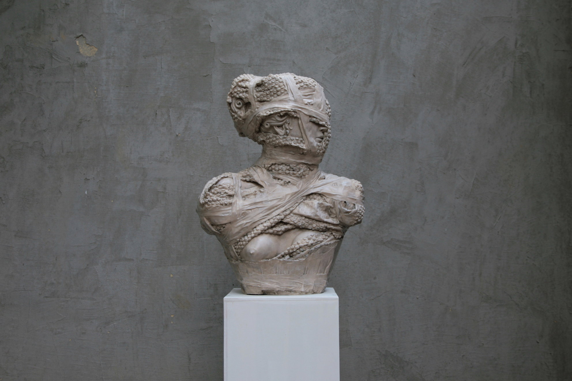 Una logica tutta contemporanea che si rintraccia nelle sculture di Daniele Accossato, dove la riproduzione di soggetti classici come i Bronzi di Riace o la Venere Italica, poi legati, imbavagliati o rinchiusi in casse di legno o plastiche da imballaggio è il pretesto per riflettere sul legame tra l'oggetto artistico e la sua ambientazione. Una relazione che spesso priva l'opera della sua aura trasformando l'oggetto in merce. Non a caso, le opere di Accossato riflettono sulla dialettica contenuto-contenitore facendo emergere la vera contraddizione in termini: è davvero possibile che l'arte in quanto tale sia anche una merce?