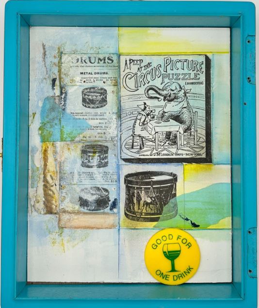 L’artista utilizza scatole in legno di sigari cubani, che trasforma in microcosmi tridimensionali, piccoli teatri sospesi tra incanto e inquietudine, assemblati con oggetti più disparati: carte da parati consunte, illustrazioni vintage, fotografie, frammenti di vita. Ogni box diventa un archivio poetico, un contenitore simbolico di sogni, memorie, e malinconie collettive. Sono le sue “scatole d’ombra” che si traducono in miniature armoniose e accattivanti, ma che rimandano alle esperienze dell’infanzia, tra gioia e tristezza, perché, al contempo, giocose e sinistre. Sono come stanze curiose di ricordi lontani, immagazzinati nel nostro subconscio. I “box” presentano dimensioni tipiche di circa 25x20x7 centimetri (larghezza, altezza, profondità); i collage, invece, per lo più di forma rettangolare, hanno dimensioni pari o superiori a un foglio A4 e danno vita a composizioni visive dense di memoria e suggestione.