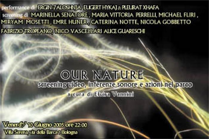 Our Nature* rientra nell’ambito di outsideArt, una rassegna con cadenza settimanale che, nei mesi di giugno e luglio, coinvolgerà artisti, performer e videomakers, con interventi live, azioni e proiezioni che si svolgeranno nel parco di Villa Serena. Uno degli obiettivi della rassegna è quello di presentare al pubblico una serie di ricerche in bilico tra arte visiva, sonora e sperimentale. Per valorizzare la dimensione ricettiva, la fruizione dell’arte contemporanea e i suoi significati, la possibilità per gli artisti invitati di progettare interventi site specific, affinchè il parco di Villa Serena si trasformi in un catalizzatore di passaggi visivi e sonori simultanei.