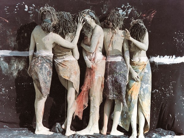 Nel ciclo “Femme Terre”, iniziato nella seconda metà degli anni Novanta, il corpo viene nascosto e, contemporaneamente, svelato da materiali vari e tessuti. L’impasto materico si secca sulla pelle fino a trasformare le modelle africane scelte dall’artista in simulacri geologici e quasi marmorei, fatti di terra e immortalati in immagini bidimensionali dal medium fotografico. La pelle si trasforma in superficie su cui il fotografo performer imprime volumi plastici mentre le donne diventano terra perché ne assumono i colori, le forme e le scabrosità. Nascono fotografie dal colore vivido, smaltato, traslucido che rappresentano corpi sensuali e misteriosi.