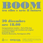 Ultimo appuntamento, a Fermignano, per la terza edizione di BOOM: Tra cibo e arte il futuro, l’evento che lega il cibo all’arte contemporanea. Il 20 dicembre inaugura la mostra collettiva Out of the box con la proclamazione del vincitore miglior packaging 2024.