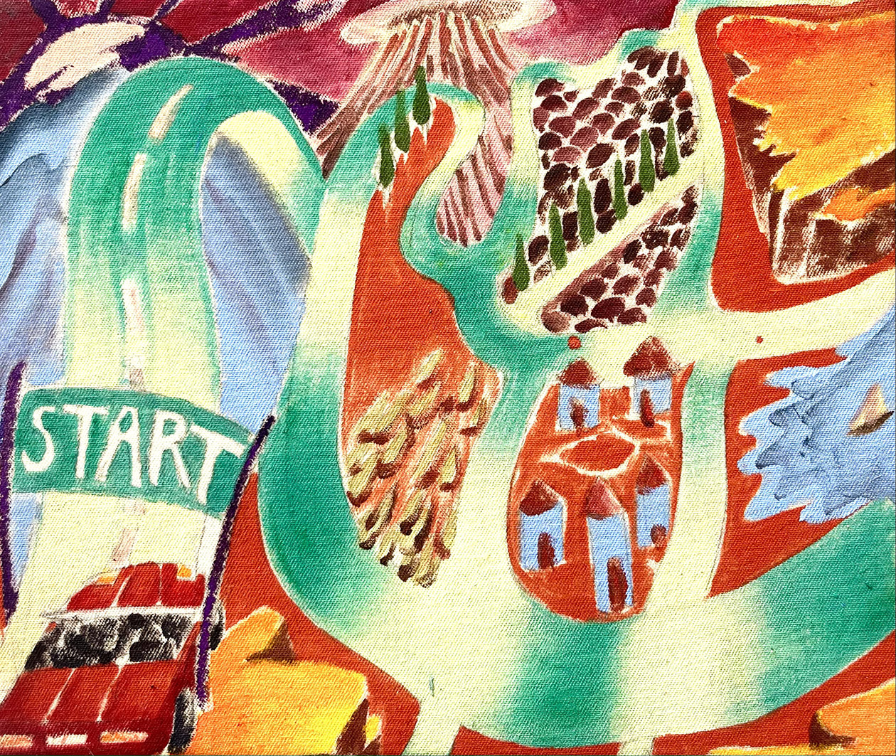 Con Out Run Jean-Michel ha voluto riproporre questi riferimenti e questo stato d’animo, rendendoli però autonomi dal gioco originale e legandoli a una storia più classica della pittura, e in particolare alla ricerca tipica del pittore solitario. Al di là del videogame, Out Run è una reminiscenza di un tempo in cui la vita era più lineare e, pur essendoci meno bivi e punti di svolta, non era più semplice.