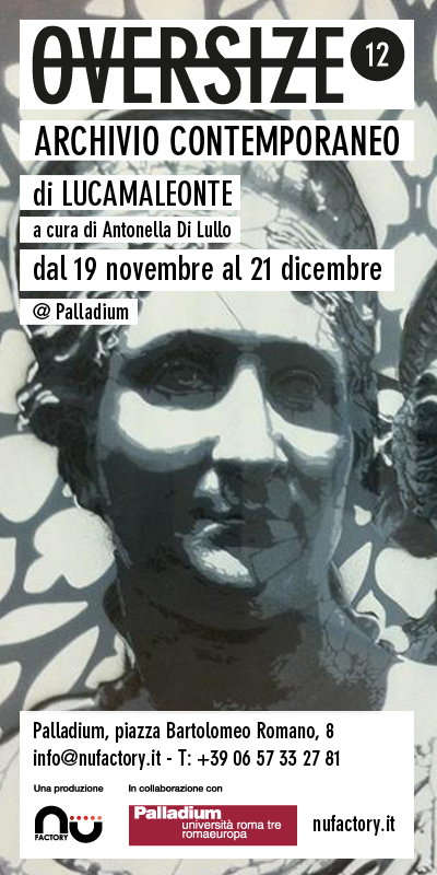 Lunedì 19 novembre, alle ore 19, la stagione espositiva di Oversize prosegue con la mostra Archivio contemporaneo di Lucamaleonte, a cura di Antonella Di Lullo. Una serie di stencil su carta e un intervento murale realizzato dello stesso artista in aperto dialogo con le opere in mostra.
