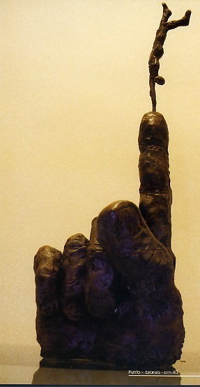 Nel caso di un valido autore dell’ultima generazione come Ovidio Piras potremmo parlare di voluta “non attualità” della sua poetica. Precisando, però, che questa non va intesa come volontà di astrarsi da un confronto teso e serrato con la vigente contemporaneità, ma, semmai, di fornire di questa una personale visione, dotata di forte senso di autonomia stilistica, incurante della possibilità di piegare una capacità tecnica indiscutibile ai dettati della moda e alle scorciatoie del mercato. Ovidio Piras ci invita alla visione di immagini e strutture scultoree volutamente “antigraziose” che prediligono u ruolo installattivo ed attivo nel contesto in cui vengono inserite, oppure ove spesso nascono. Una scultura che pone in maniera ossessiva al centro della sua riflessione la figura umana: L’uomo di Piras è un silente testimone del mondo, con il quale tenta approcci che tendono alla ricerca di una possibile empatia. Rappresentati in varie scale e dimensioni, con il costante uso di materiali primari quali terre, ferro, creta, metallo, talvolta nobilitati dall’uso di un materiale di più evidente nobiltà come il bronzo, pur nell’assenza pressochè totale di qualsiasi concessione cromatica, gli uomini di Piras paiono calati in una dimensione di sostanziale atemporalità e di incerto esito, sospeso tra il dramma e l’ironia. Le silhouettes in taluni frangenti riecheggiano quelle care ad un grande del Novecento come Giacometti, in particolare nei casi in cui assumono apparenza filiformica, oppure quando vengono esaltati frammenti anatomici, come nel caso delle braccia, palesemente fuori proporzione rispetto alla massa corporea, e culminanti in mani gigantesche, tese a pugno in aneliti di rabbia, ammonitrici o calcanti il suolo alla ricerca di un punto di appoggio. L’uomo rappresentato da Ovidio Piras pare muoversi sull’asse dicotomico contemplazione/azione, alla ricerca di un punto di riferimento che sia in grado di incarnarsi nel “qui ed ora”, nell’eternità temporalizzata del presente, ricordando in questo caso molto da vicino l’esistenzialismo tipico della filosofia stoica. Una riflessione, quella di Ovidio Piras, sulla condizione umana nella sua difficile relazione con lo scenario contemporaneo, condotta con assoluto rigore e coerenza, sulla scia della lezione dei grandi maestri dell’avanguardia novecentesca. Le sue sculture nascono per scalare i muri, posarsi curiosamente su oggetti preesistenti al soffitto o a terra, per appendersi con grazia o disperata ostinazione ad una base d’appoggio, per occupare contenitori ormai in disuso oppure per essere semplicemente presenti nello spazio in silenziosa contemplazione.