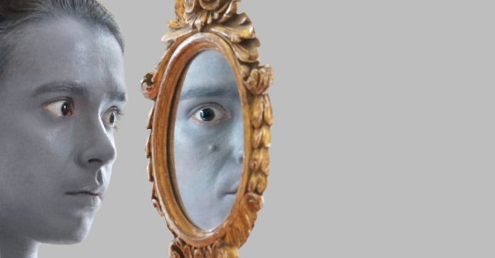 Nasce così la storia della Strega Grigia, una figura enigmatica e imperscrutabile che rappresenta la personificazione della lastra metallica che si nasconde dietro il vetro di ogni specchio. Invisibile allo sguardo per la sua proprietà riflettente, si rivela però come sottile strato materico soltanto nel momento in cui il vetro viene tagliato in sezione. Una sorta di creatura che tutto vede ma che rimane elusiva e invisibile.