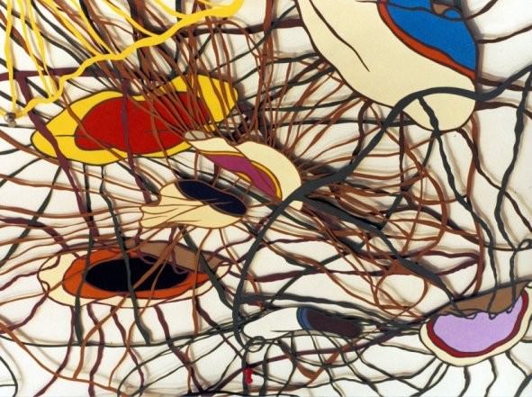 Nella stessa mostra Vargas Lugo presenterà una seria di disegni dal titolo “ Tissues” . Si tratta di disposizioni di forme organiche, vagamente somiglianti a cellule, occhi e soli, tutte intrecciate in pezzi grandi e circolari che sembrano osservare il tutto e il niente allo stesso tempo; una nuova sorta di società, che guarda nervosamente negli occhi dello spettatore e poi lontano de essi, così come farebbe un qualsiasi “essere”messo in mostra.. “ Mexico City Sidewalks” , sono tre installazioni che ricreano una tipologia di infrastruttura urbana nella galleria. Sono riproduzioni di pezzi di marciapiedi, il cemento spaccato, con l’erba che cresce in queste fessure come in qualunque marciapiede del mondo ; ma la loro geometria è stata condotta ad un delirio caleidoscopico, le loro linee accuratamente riflesse, come se la loro qualità prosaica raggiungesse improvvisamente la preziosità di un giardino.