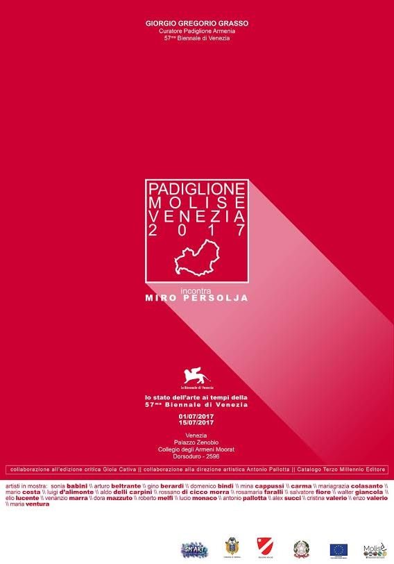 Christine Marcel, direttrice della 57^ Biennale di Venezia, ha pensato ad un fil rouge dal titolo “Viva Arte Viva”, che apre ad uno scenario molto preciso nei temi e a mostre nella mostra. È inutile sottolineare l’importanza che un evento come la Biennale riscuote nel mondo della cultura, così come è importante per la nostra società ed il nostro imprinting turistico. Come curatore del Padiglione Armenia, ospitato all’interno del prestigioso Palazzo Cà Zenobio, Giorgio Grasso in collaborazione all’associazione culturale SM’Art!- L’arte Sm! di Isernia ha aperto le porte del padiglione ad una rappresentanza di artisti molisani e delle regioni limitrofe. Una mostra che presenta il variegato panorama artistico che l'arte dell'entroterra offre. Dalle superfici piane a quelle tridimensionali, dalla pittura alla scultura sino alla fotografia, gli artisti propongono interessanti soluzioni comunicative e visive, ognuna con proprie caratteristiche.