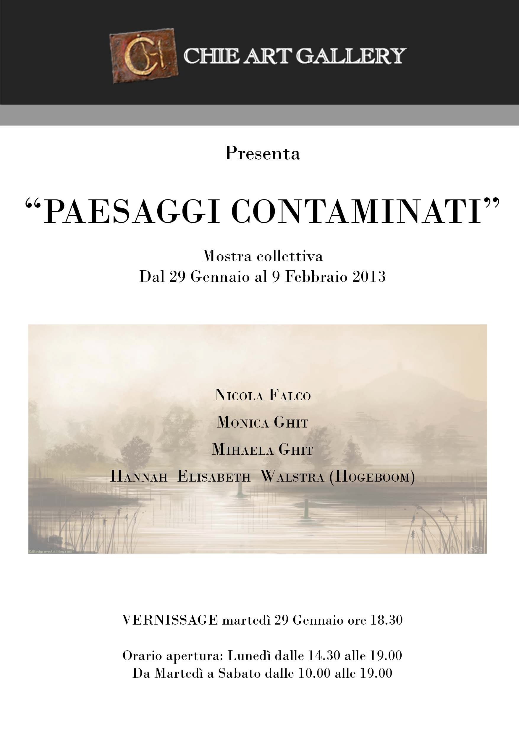 La Chie Art Gallery è lieta di presentare la mostra Paesaggi Contaminati, una collettiva di Nicola Falco, Mihaela Ghit, Hannah Elisabeth Walstra Hogeboom e Monica Ghit, visitabile dal 29 gennaio al 9 febbraio 2013.