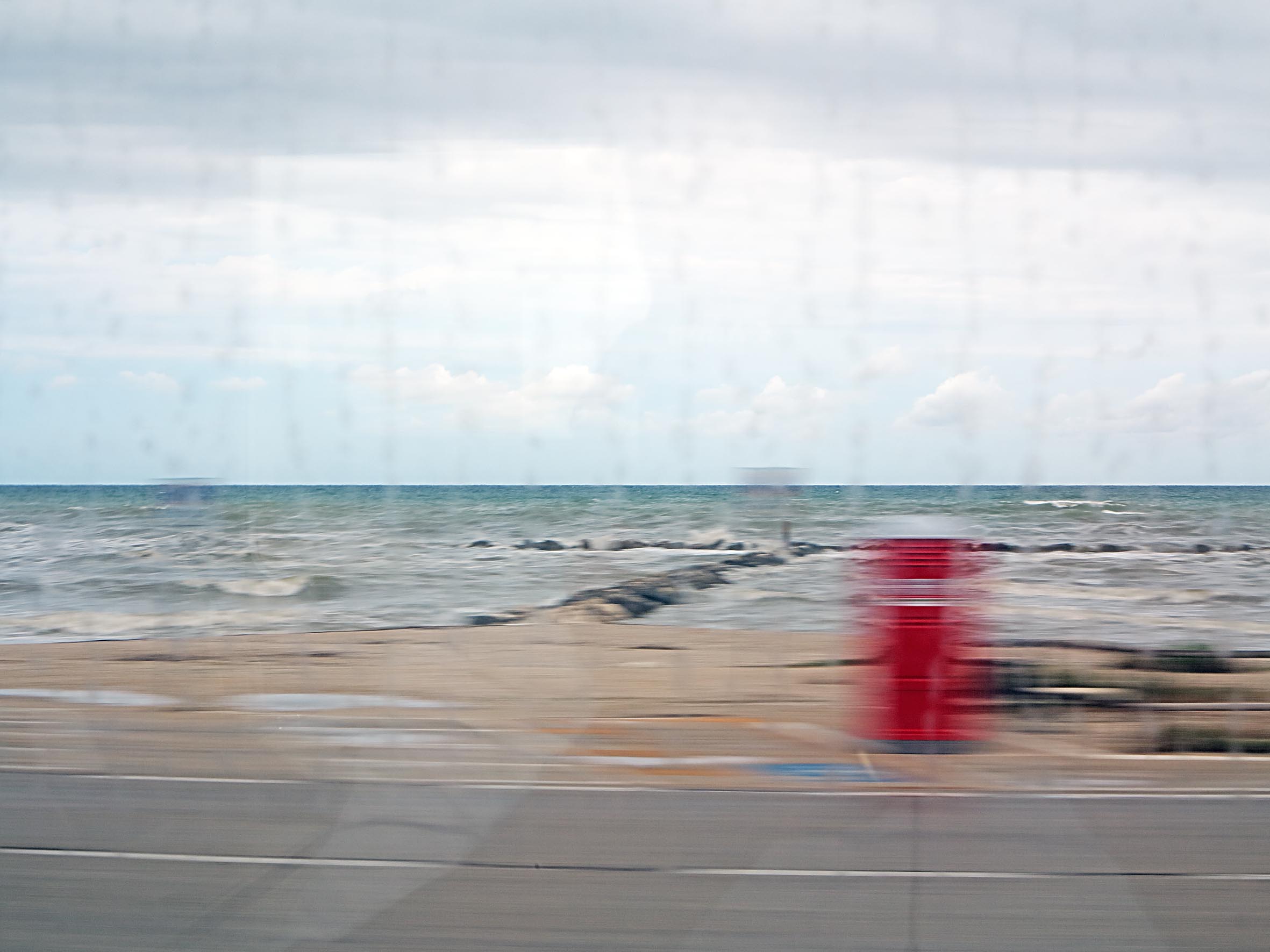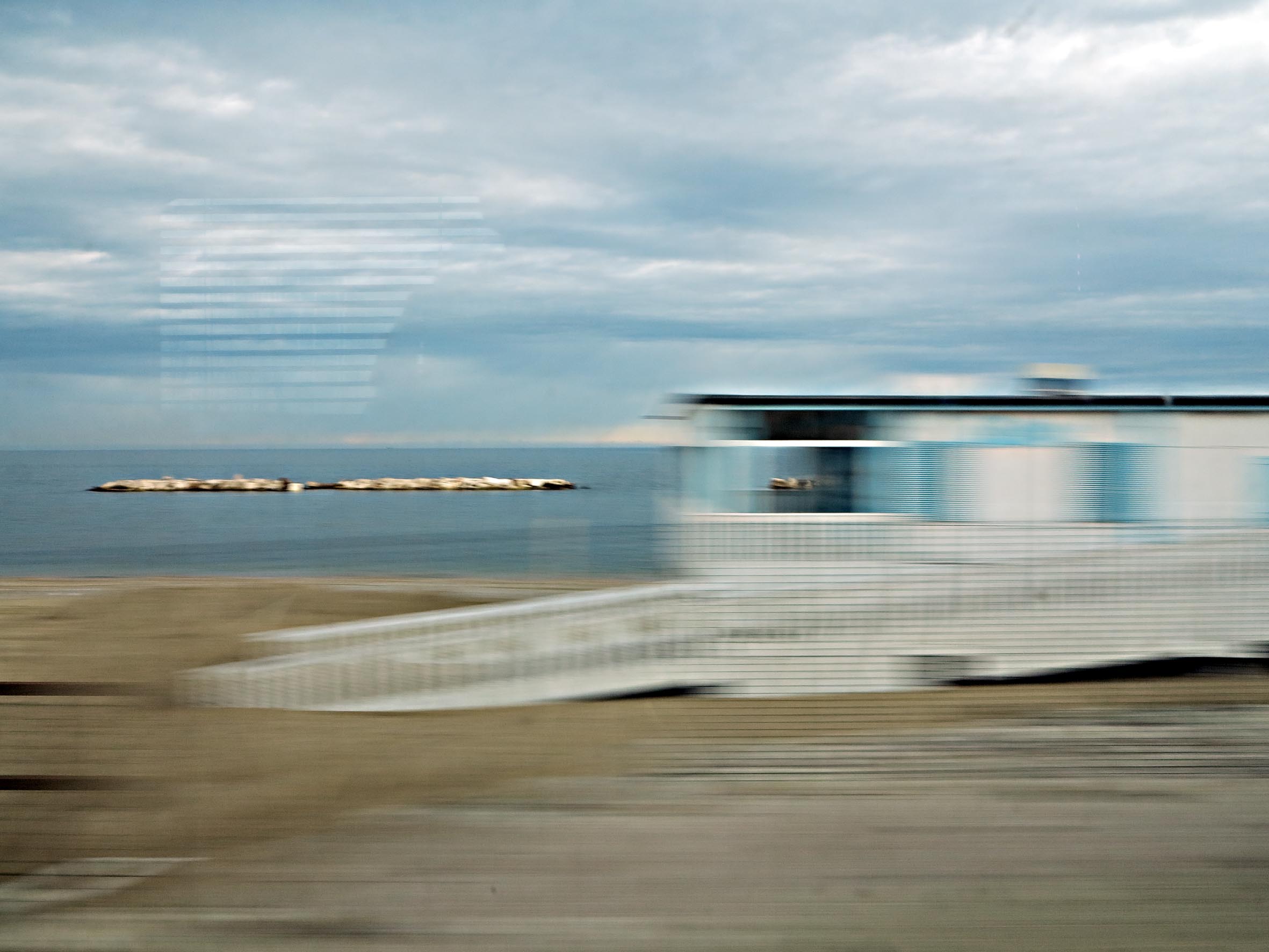 …Paesaggi di Passaggio raccoglie immagini dei diversi luoghi d’Italia. Si va dal mare Adriatico nei pressi di Ancona e Civitanova Marche alla riviera ligure nei pressi di Alassio; dalla periferia di Orvieto e Chiusi-Chianciano Terme a quella di Pescara, passando per Assisi; si scende dalle campagne di Capua e Benevento verso Lesina per attraversare un campo di papaveri in Capitanata; si ritorna poi a Nord Est verso Padova, attraversando il ponte sul Po a Ferrara…
