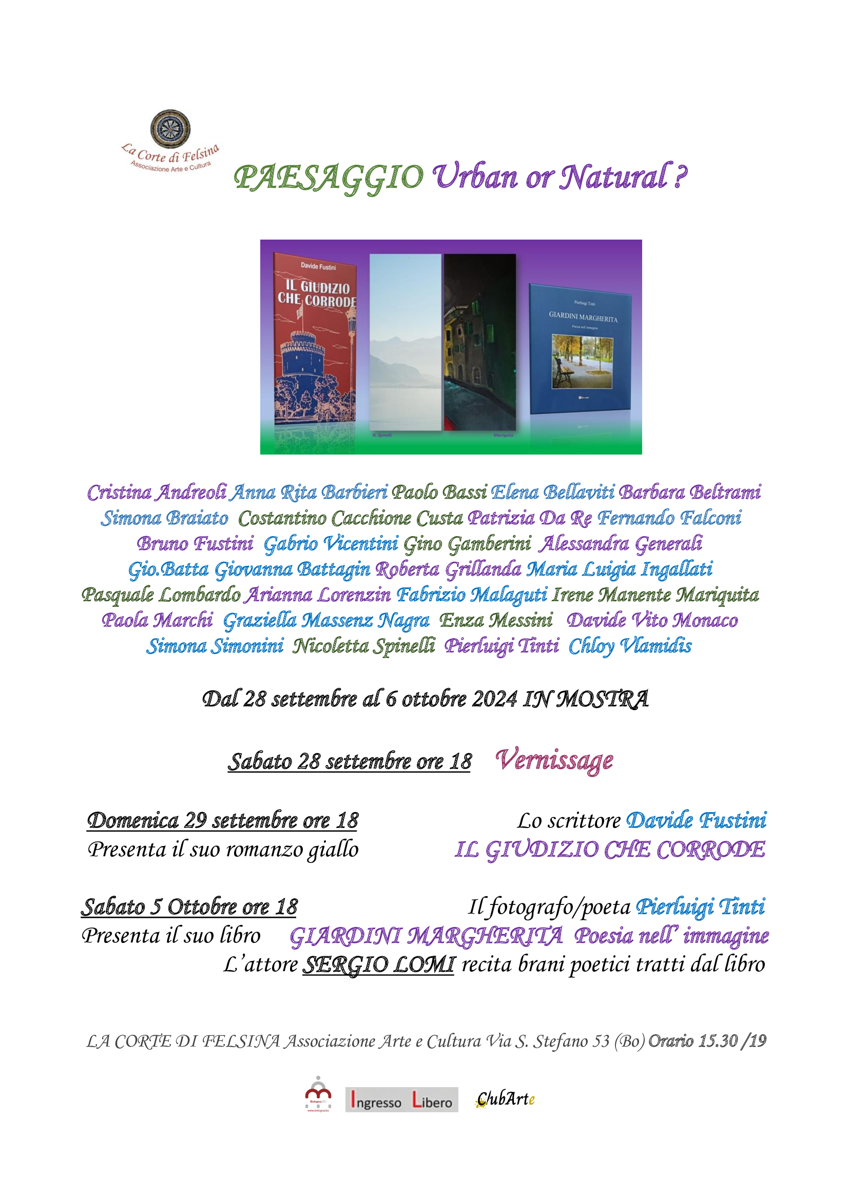 Dal 28 settembre al 6 ottobre 2024 La Corte di Felsina Associazione Arte e Cultura presenta la mostra d’arte visiva PAESAGGIO Urban or Natural?
