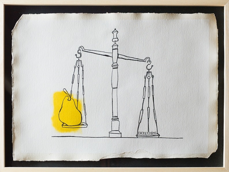 Provare a scrivere in poche righe dell’opera di Pamela Grigiante è un po’ come - citando un suo lavoro - fare il gelato senza zucchero: viene uno “schifo”. Questo perché lei stessa in ogni singolo lavoro, in sintesi, dice tutto; scrive anche quello che noi pensiamo ma non abbiamo il coraggio di esternare, quello che non si deve dire. Non ci resta dunque che cercare il nocciolo. Vi ricordate la casetta di Hänsel e Gretel? Era fatta di pane, focaccia e zucchero. Era un inganno. Non era comparsa per sfamare i figli del povero taglialegna, ma per farli divenire essi stessi cibo. Si chiama cannibalismo. Questa fiaba narra anche di questo, come affronta, sempre velatamente, temi quali l’abbandono, la violenza e l’infanticidio. Dietro ai filtri della censura e del linguaggio fantastico esiste un messaggio che non ha nulla di magico, ma che al contrario trae linfa dalla storia reale e dalla vita vera. Le opere di Pamela Grigiante assomigliano alle fiabe. Usano un codice comunicativo capace di sintetizzare concetti complessi in immagini apparentemente semplici, immediate e giocose. Ti attraggono da lontano con un sorriso per poi togliertelo lasciandoti interdetto, turbato e frastornato. Vediamo la ‘casetta’ di marzapane colorata e allegra, che ci riporta all’infanzia e ai libri di storie che sfogliamo con i nostri figli; poi leggiamo “Did your love story survive after Christmas?”, finisce la magia e ci scopriamo novelli Hänsel e Gretel. La già citata ‘casetta’ è una figura chiave nel corpus di Grigiante: protagonista su sfondo rosso in “Io non sono portata per la ginnastica artistica” e ideale comune denominatore nell’intera collezione di “Domestic Love”. Dal punto di vista formale, ci esorta a riflettere sulla propensione dell’artista verso forme chiuse dai confini incerti. Dalle geometrie sghembe delle prime opere astratte, ai margini ondulati e frastagliati delle carte, fino alla solida trasparenza delle boxes ricorre un senso di subdola claustrofobia. La stessa che si può avvertire nel privato, all’interno delle mura domestiche, dove l’ipotetica cena a due di “Dinner is an unconvetional way to make love”, atto di amore ben confezionato per provare al mondo e a se stessi di esistere come coppia, finisce in una minestra riscaldata. Un teatrino in cui tra l'ennesimo bicchiere di vino e i troppi discorsi inconsistenti ci si accorge di essere soli, cadendo nella voragine che separa le convenzioni dalla natura dell’essere, ciò che dobbiamo essere da ciò che siamo (o vorremmo essere). Ecco che improvvisamente, come in un cartone animato, le posate d'argento della tavola a festa si animano a formare un plotone d'esecuzione e si presenta il conto. (Tiziana Tommei)
