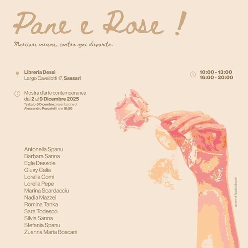 - In occasione della "Giornata Internazionale per l'Eliminazione della Violenza contro le Donne" del 25 Novembre, la città di Sassari ospita la mostra "PANE E ROSE , marciamo insieme contro ogni disparità", una mostra d'arte contemporanea che vede la partecipazione