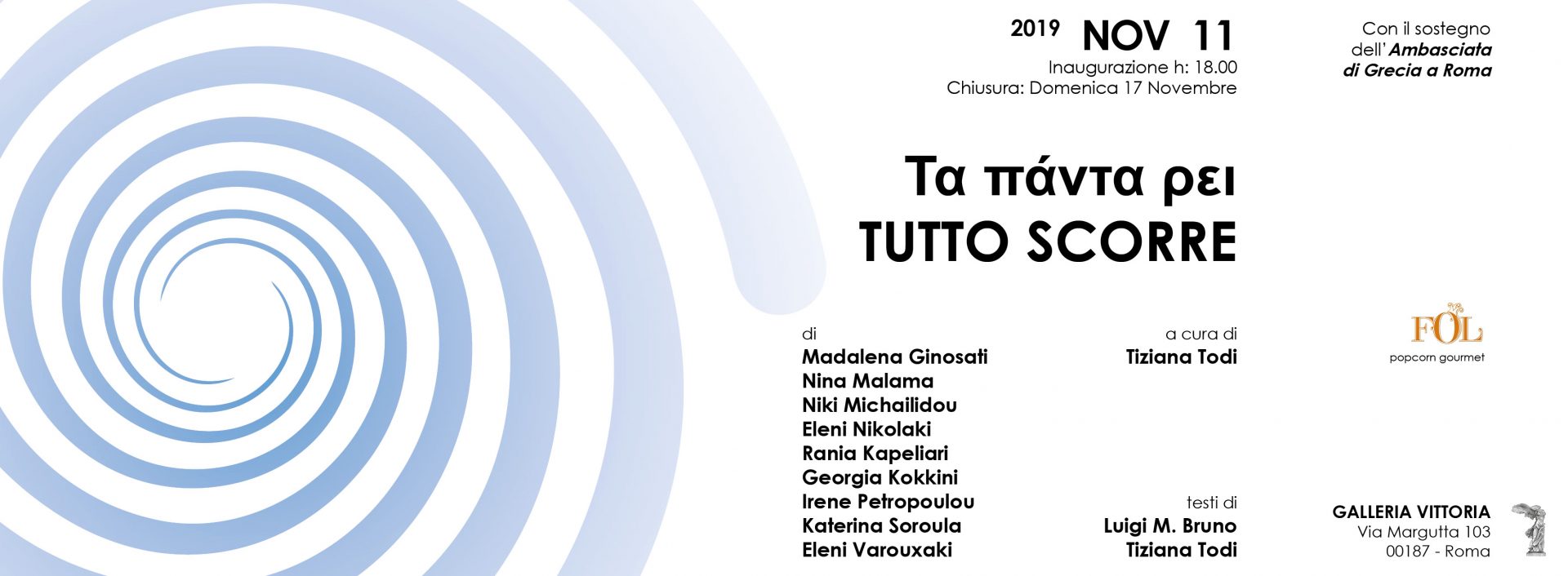 La Galleria Vittoria inaugura lunedì 11 Novembre alle ore 18,00 una mostra tutta al femminile, “Panta Rei” che vede coinvolte nove artiste di origine greca: Ginosati, Malama, Michailidou, Nikolaki, Kapeliari, Kokkini, Petropoulou, Soroula, Varouxaki.