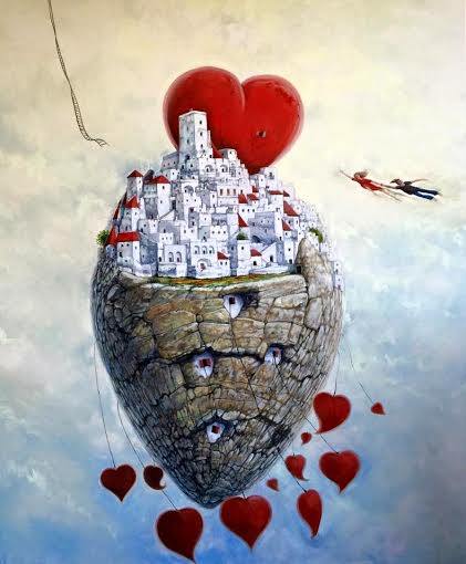 attraverso l’onirico e il metafisico, in un clima di candore quasi fiabesco.