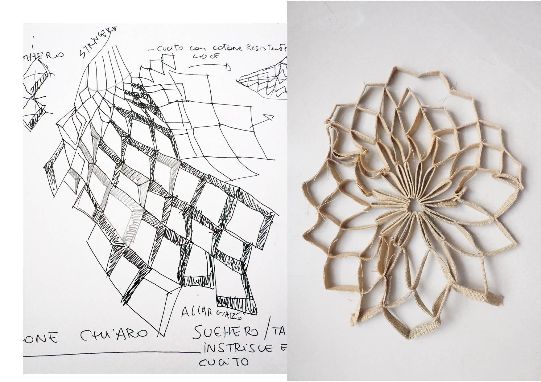Paola Anziché ha cucito un “tappeto alveare” in iuta. Sul pavimento di Quartz un esagono si unisce all'esagono confinante creando un motivo pavimentale astratto, color oro. La fibra naturale della "iuta", non a caso, è anche chiamata "fibra d'oro". Spesso non siamo nemmeno consapevoli di quanti manufatti in iuta siano presenti nella nostra vita quotidiana. Il materiale grezzo, in sé anonimo, oggi è persino diventato di tendenza, ma nei secoli è stato destinato a un uso pratico: alla produzione di tappeti, corde e sacchi da impiegare per il trasporto delle merci. La iuta è quindi un materiale legato a una lunga storia di scambio di conoscenze, al trasferimento di merci e a una rete globale di rotte commerciali, dai lontani luoghi di produzione, ai luoghi di lavorazione e infine di distribuzione. Paola Anziché apprezza la particolare qualità della fibra naturale, la sua materia morbida e insieme robusta, cui ha già dato pregnante espressione in una serie precedente intitolata Yurte (2010/2011). Le sue Yurte risvegliano una sensazione di vicinanza e distanza, di singolare familiarità e stranierità. L'impulso immediato di toccare gli oggetti, di esplorarli attraverso il tatto, è probabilmente dovuto anche alle tecniche tradizionali di tessitura e cucito apprese dall'artista. Le opere ricordano oggetti quotidiani sovradimensionati, a volte anche oggetti di culto rituali straordinari. Mentre la serie Yurte rifletteva ancora a livello visivo il contesto culturale cui rimandavano il materiale, le forme e le tecniche, nell'installazione che Anziché propone da Quartz i visitatori diventano parte dell'evento. Il progetto intitolato La Terra Suona mette lo spettatore a confronto con sé stesso, con la propria percezione soggettiva e il proprio comportamento nello spazio artistico e in quello esterno. Così, non appena varchiamo l'ingresso dello spazio, siamo invitati a posare il piede sul tappeto-alveare, quindi ad entrare fisicamente nell'opera d'arte stessa. È molto probabile che nemmeno ci si accorga di poggiare i piedi su un’opera, perché, avverte l'artista, "la prima sensazione che lo spettatore avvertirà è l'odore". E l'odore è il profumo di cera d'api che si sprigiona da una rete che si espande nello spazio dal soffitto, in cui s'intrecciano strisce di tessuti colorati, imbevuti di cera d'api. Se nell'installazione Fibre naturali (2016) lo sguardo dello spettatore veniva dirottato dalla parete espositiva al soffitto, qui, per osservare più da vicino l'opera, siamo sollecitati a soffermarci sul tappeto come fosse una sorta di superficie di proiezione. Possiamo starci piacevolmente sdraiati sopra e sognare, lasciando correre l'immaginazione. "La giustapposizione di colori nelle trame morbide può ricordare un prato fiorito in primavera", dice l'artista. L'intreccio a maglie larghe di colori e forme astratte scende dal soffitto disegnando una volta ondulata e variopinta che apre a una visione primigenia della natura, ben lontana dalle forme del giardino strutturato. Questo spazio-nello-spazio fa dunque appello a tutti e cinque i sensi dello spettatore. La Terra Suona è un invito ad immergersi per esplorare in profondità il rapporto fra arte e natura.
