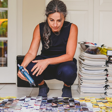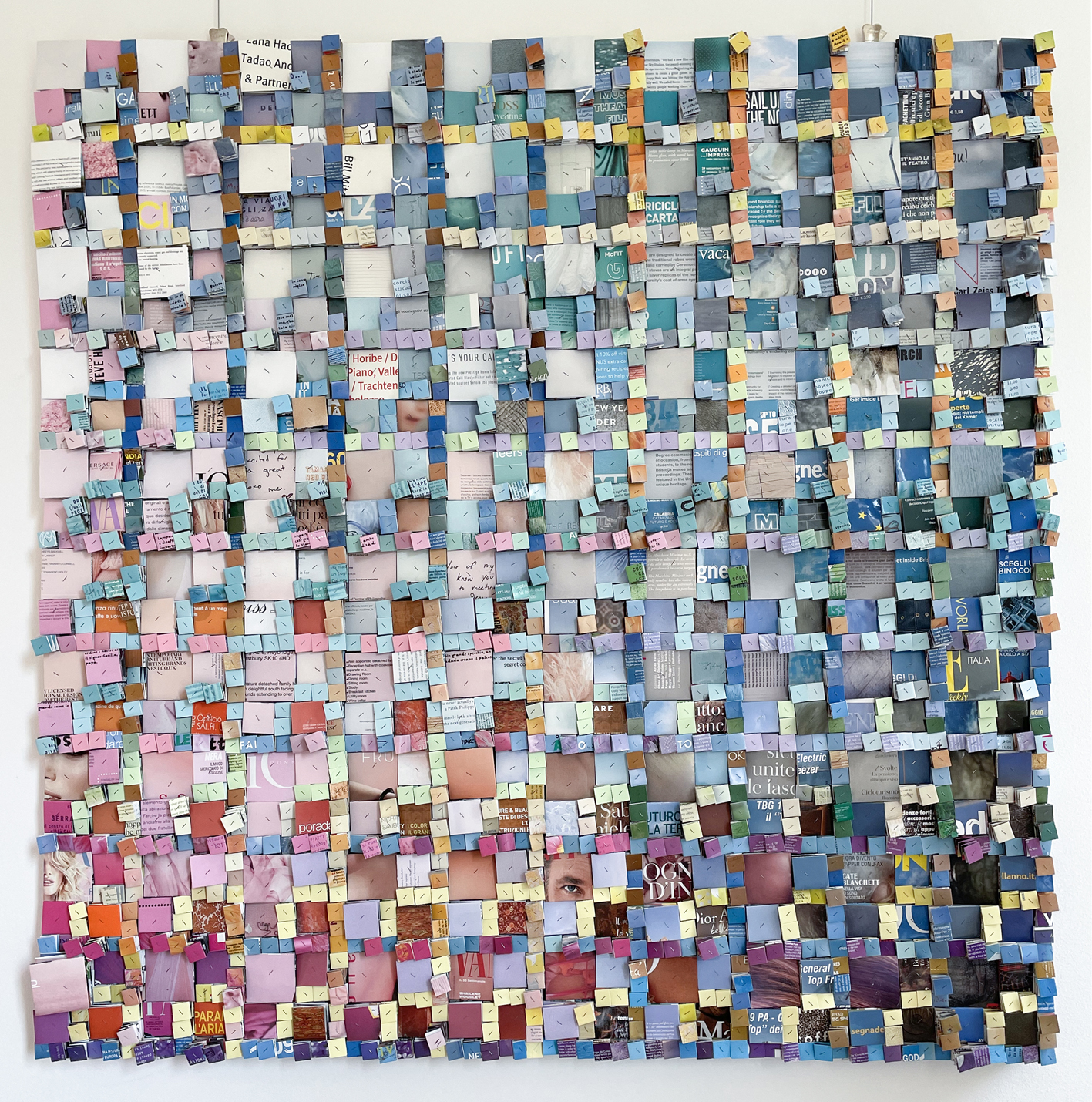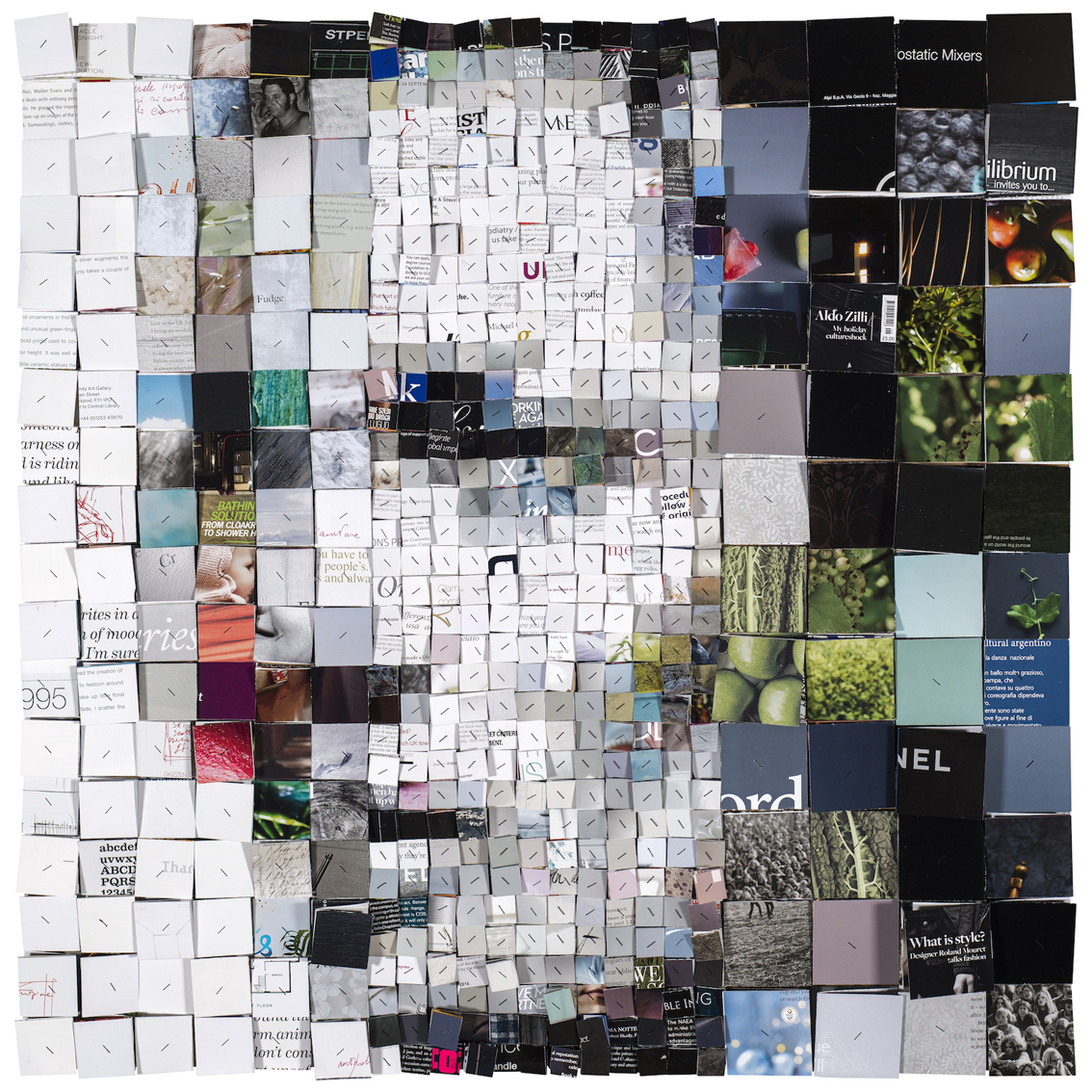 In mostra sono presenti alcune opere realizzate con la prima tecnica delle Concertinas, con carta riciclata da riviste, cataloghi e piegata a forma di fisarmoniche variabili. Ogni tassello, come un pixel di un'immagine, diventa una parte di un lavoro complessivo che si sviluppa sia in superficie sia in altezza, e il cui risultato finale sorprende perché ci restituisce una rappresentazione di varia umanità in cui possiamo rifletterci.