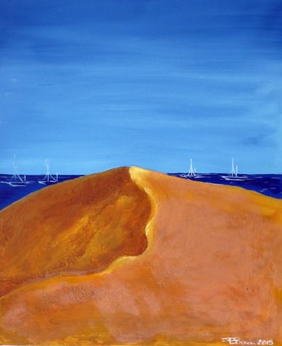 Una mostra dal sapore estivo, allegro e gioioso. In quel mare, in quelle onde o in quelle vele a volte appena accennate sulla tela o a volte ben evidenti, l’artista è come se si mettesse a nudo e volesse comunicare il suo stato d’animo di quel preciso istante. Sensazioni ed emozioni in contrasto.
