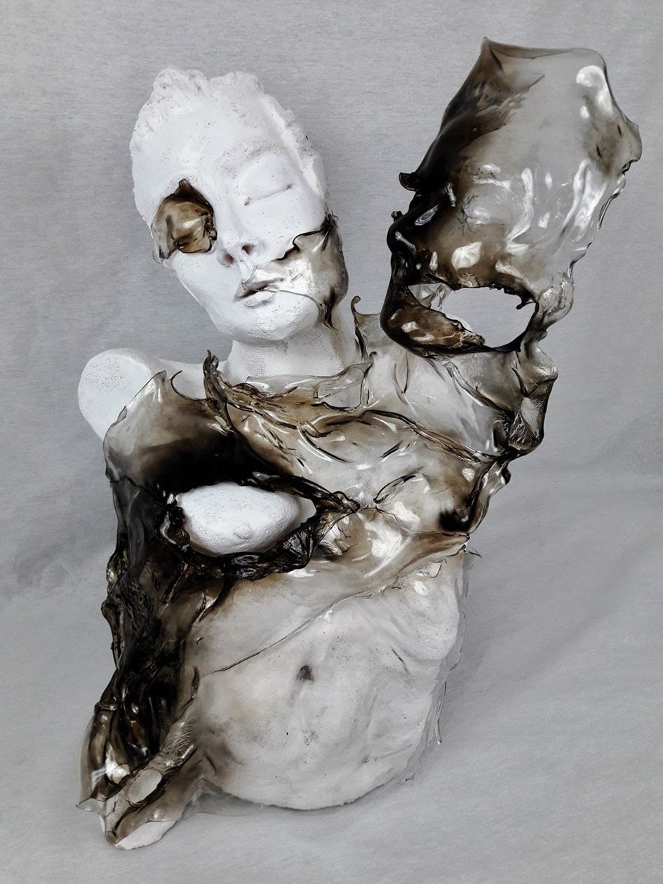 Abbina il PMMA-plexiglas, precedentemente utilizzato nelle applicazioni di design, alle sculture creando velature che enfatizzano il significato delle opere.