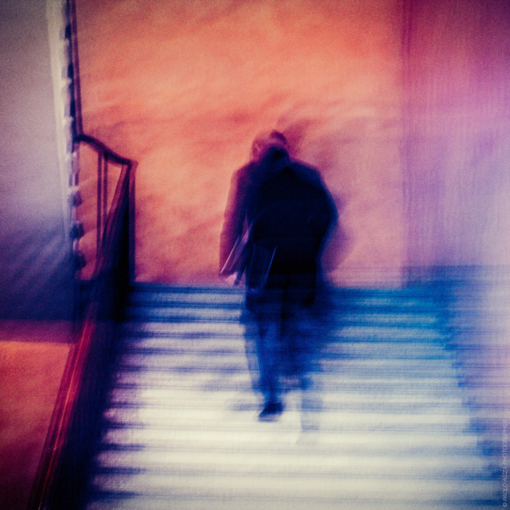 Paolo Aizza compie un lavoro di astrazione della figura, dove il colore e il moto diventano gli elementi compositivi dominanti dei suoi scatti che provengono da situazioni fortemente urbane. Il centro città e il transito quotidiano con esso vengono quindi riassunti e amplificati, rendendo irriconoscibili luogo e contesto ed esaltandone il dinamismo.