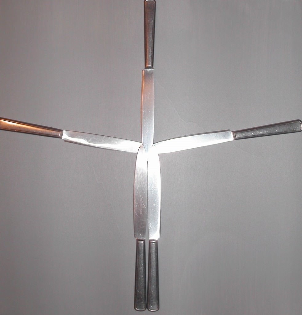 Tanto tempo fa c e’ stato un sacrificio, una lotta una perdita: ce lo dicono le macchie rosse, i tanti coltelli, i corpi straziati (o decorati?) da tante puntine metalliche colorate .