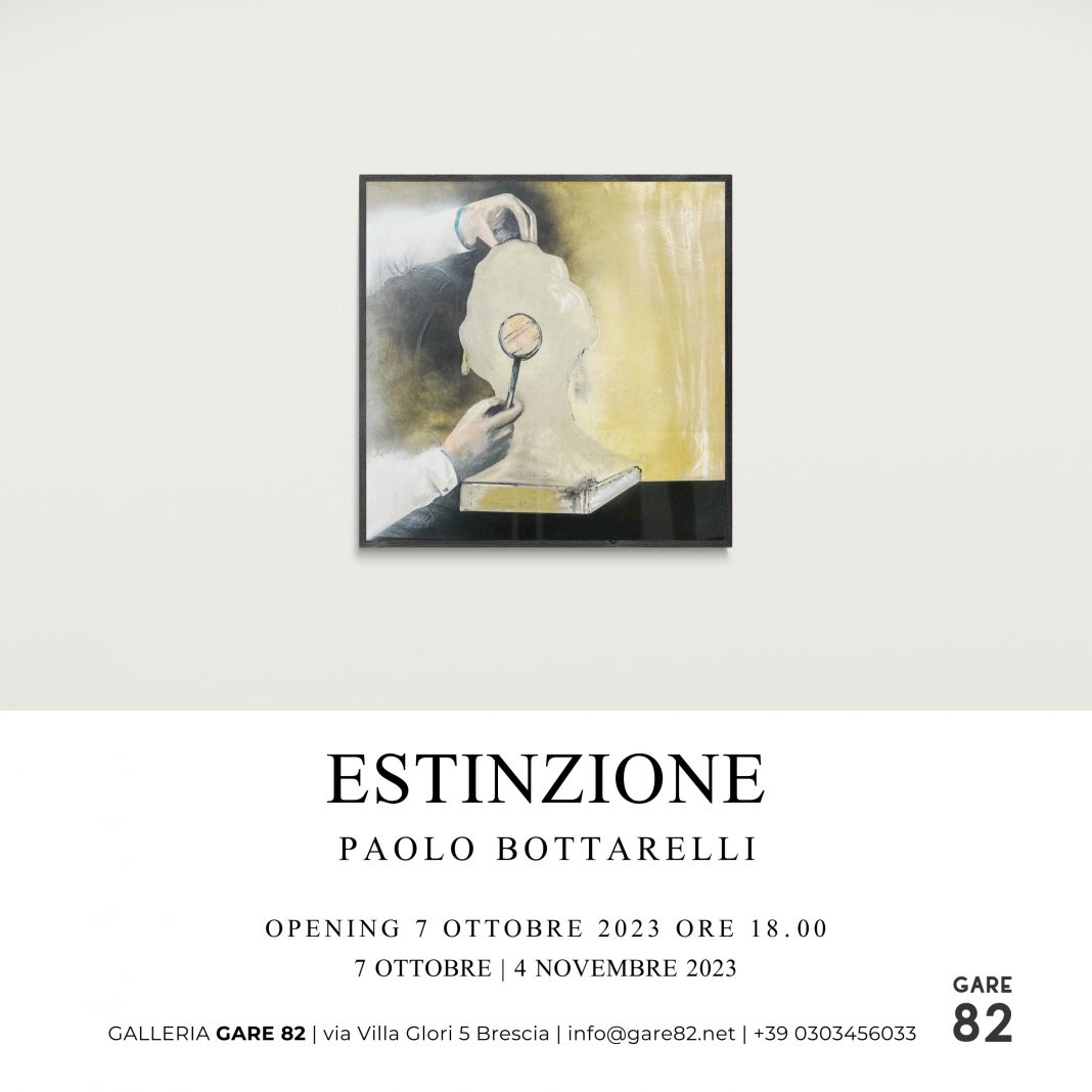 La mostra Estinzione presenta in anteprima le recenti opere dell’artista. Affidandosi alla tradizionale tecnica della pittura, Bottarelli realizza scene in cui l’uomo è presente, anche se non necessariamente rappresentato, in veste di vittima e carnefice di quella che è oggi una realtà incontrovertibile: l’impatto che l’essere umano ha sulla natura e le conseguenze che sembrano irreversibili. I titoli delle opere agiscono da lenti d’ingrandimento che fanno emergere immediatamente il focus dell’opera
