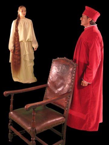 Nell’installazione, sotto la direzione artistica di Paolo Buroni, rivive Federico da Montefeltro interpretato dal famoso attore Giulio Base. Il grande condottiero dialoga per quindici minuti con un angelo, che pone a Federico, in modo dolce ma fermo, molte domande “penetranti” . Federico, è in abito rosso con il tipico cappello. Si muove liberamente all’interno della scena, il suo atteggiamento è a volte sulla difensiva, ma fermo ed orgoglioso e diffida del suo interlocutore fino alla fine, anche se le sue risposte sono quelle che darebbe a se stesso e alla storia. L’angelo può rappresentare la Dialettica, della quale Federico si dichiarava alunno, l’anima del Duca, lo Spirito della Storia, la Verità. Il suo ruolo è quello di mediatore tra Federico e un ignoto tribunale che dovrà giudicarlo. Il suo atteggiamento è perciò protettivo, ma pungente. Il tono della voce è sempre rispettoso e paziente, ma non risparmia domande imbarazzanti ed irritanti per un principe. Il risultato è un affascinante spaccato sulla vita di Federico, sul suo carattere e sulla sua filosofia con arditi affondi anche nei suoi sentimenti ed emozioni più intime.