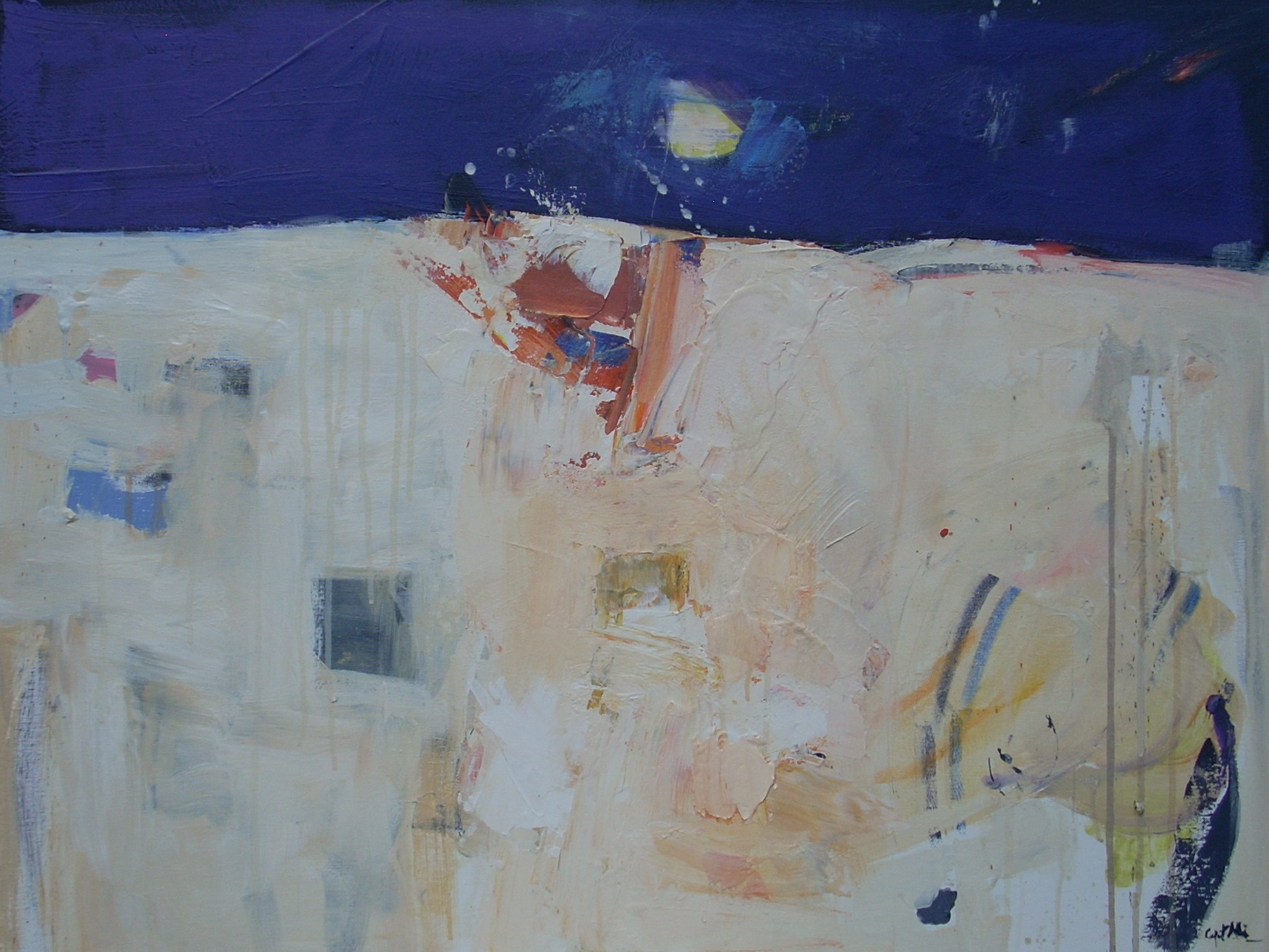 L'aspetto evocativo del mondo naturale - fatto di minuscoli insetti e fioriture - che l'artista coglie nella sua più elementare e delicata espressione, non inficia la scelta di un linguaggio pittorico vicino all'astrazione, anzi ne diventa parte integrante in un continuo dialogo che di volta in volta mette in evidenza chiavi di lettura differenti. La medesima considerazione si può fare per le opere nelle quali Capitelli si confronta con il paesaggio, sia nei rimandi alle colline dell'Appennino che negli scorci di terre che si affacciano sul mare. In queste tele l'astrazione si amalgama alle morfologie e allo sfavillio cromatico di luoghi amati, ripresi nell'abbagliante luce del giorno, ma anche nella quiete di rassicuranti notti illuminate dal melodioso chiarore dalla luna.