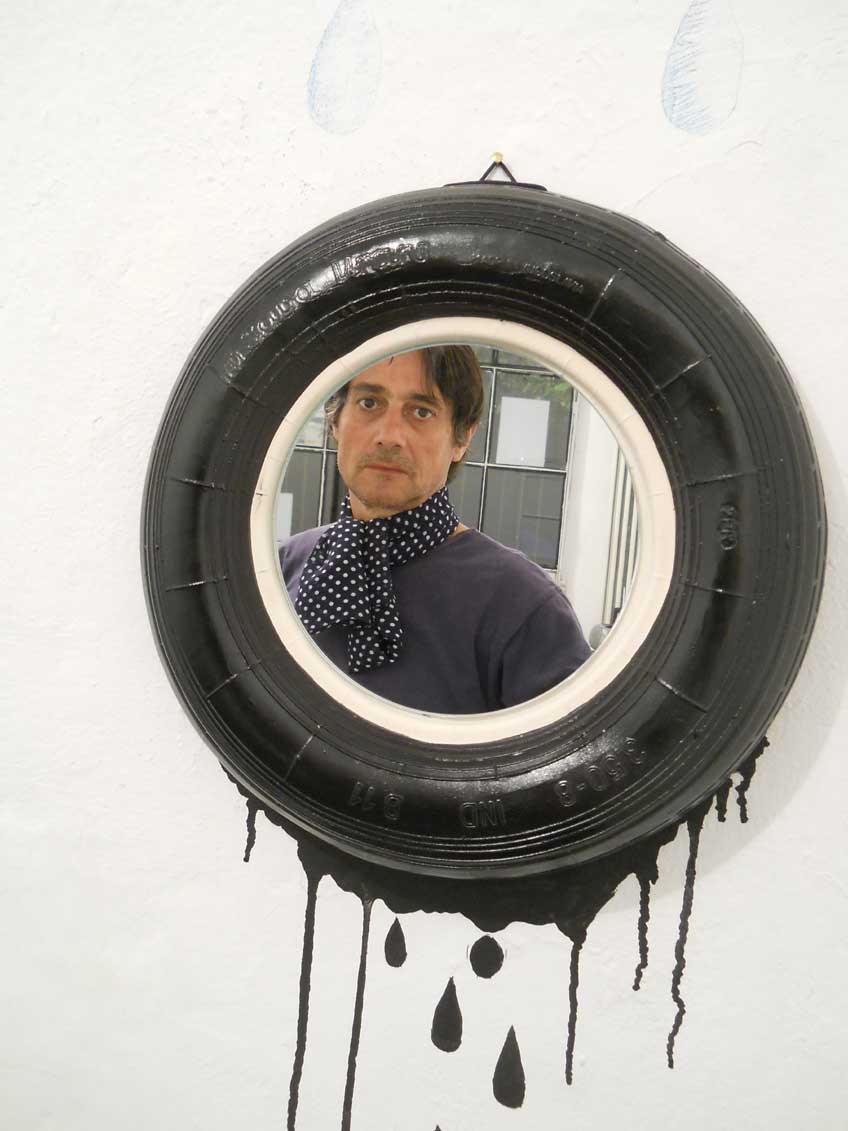 Paolo Carnevale rielabora i vecchi copertoni, quelli che rappresentavano uno dei suoi giochi consueti e preferiti, in mezzo alla strada: erano copertoni dismessi o abbandonati, forse da altri bambini.