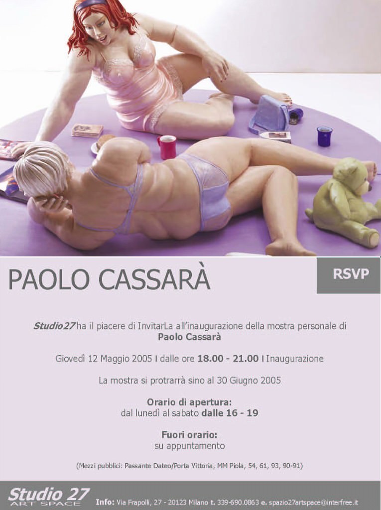 Paolo Cassarà nasce il 26 giugno 1968 a Monreale, Palermo. Vive e lavora a Milano dal 1987 dove ha iniziato, da autodidatta la sua attività artistica. Ha tenuto le prime mostre personali a Torino, Milano e Boston. Ha inoltre partecipato alle esposizioni,” Icastica” alla Galleria Comunale d’Arte Moderna di Bologna, “Collezionismo a Torino” al Museo Castello di Rivoli, PAC Padiglione d’Arte Contemporanea, Marella Arte Contemporanea, Italian Factory - “La Nuova Scena Artistica Italiana” alla Biennale di Venezia e con Italian Factory al Parlamento Europeo di Strasburgo. L’interesse per la scultura è sempre stato strettamente ispirato alla figura umana ed ai fenomeni sociali legati al mondo dei giovani con particolare attenzione al fenomeno della moda. In questa mostra l’artista focalizza la sua attenzione su diverse sfaccettature dell’umanità.