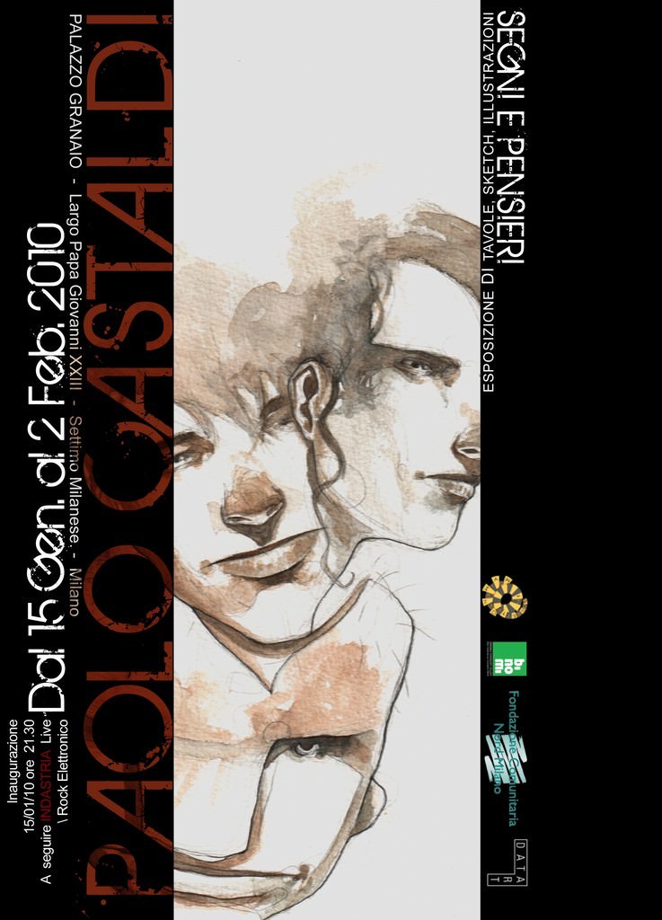 “Segni e Pensieri” è la prima personale di Paolo Castaldi, autore di fumetti ed illustratore milanese. L’esposizione a Palazzo Granaio ospiterà tavole, illustrazioni, acquerelli e sketch, editi e non, degli ultimi due anni di lavoro dell’autore.