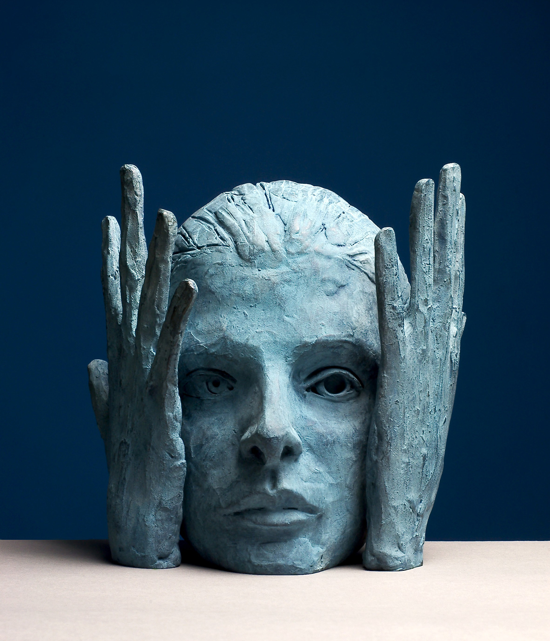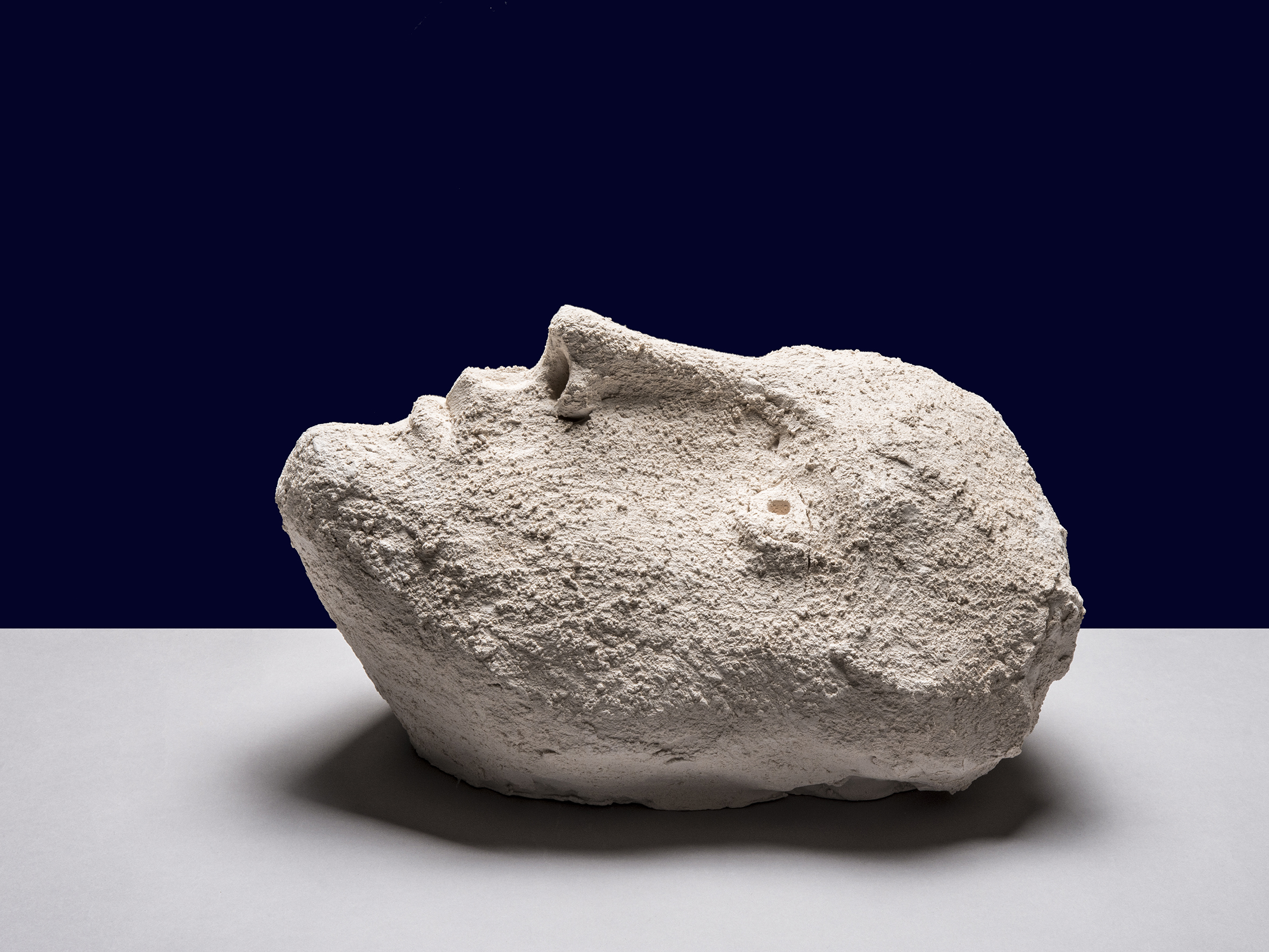 Paolo Delle Monache riconosce Osvaldo Licini tra i suoi numi tutelari – insieme ad Arturo Martini – e l’installazione site-specific ideata per questa mostra lo conferma. Diafani volti germinano come apparizioni nello spazio, solitari o in composizioni: alcuni sembrano dormire, sognare, hanno le palpebre abbassate, altri hanno lo sguardo malinconico, assorto, altri ancora ci scrutano con un’espressione inquietante. L’atmosfera è sospesa, enigmatica. Le teste in nivea terracotta sono forgiate con un sicuro senso della sintesi, improntate ad un figurativismo che si svela come una sorta di epifania. Delle Monache racconta che la genesi creativa di queste opere affonda le radici nel passato e si origina dall’impressione ricevuta da “grandi sassi vicini tra loro, disseminati in una faggeta”. Anche in Licini l’ispirazione si innesca a partire dal dato visivo: le sue creature fantastiche, gli Olandesi Volanti, le Amalassunte, gli Angeli Ribelli, nascono dalla fascinazione per il paesaggio e dalla metamorfosi delle forme naturali generata dalla sua visionarietà.