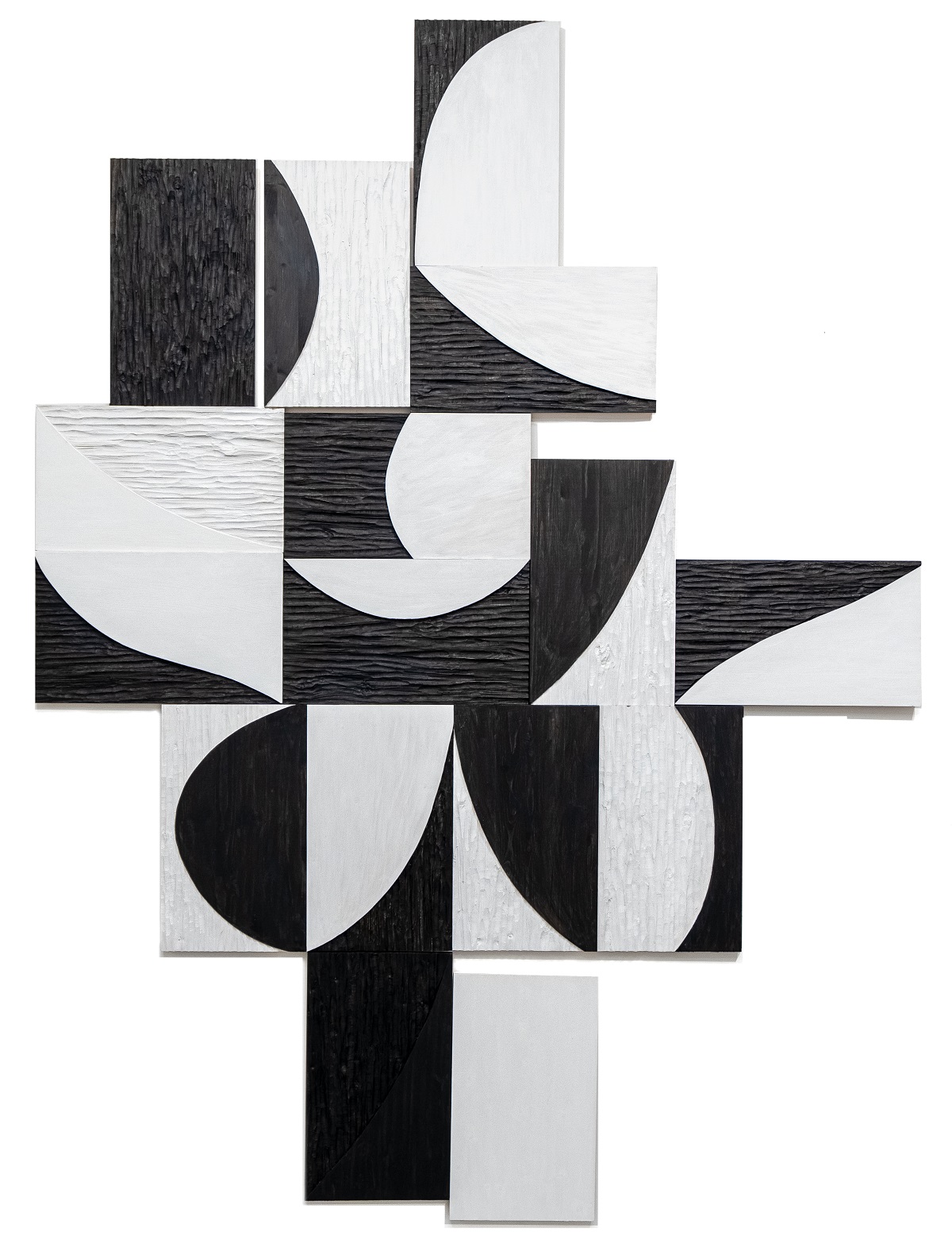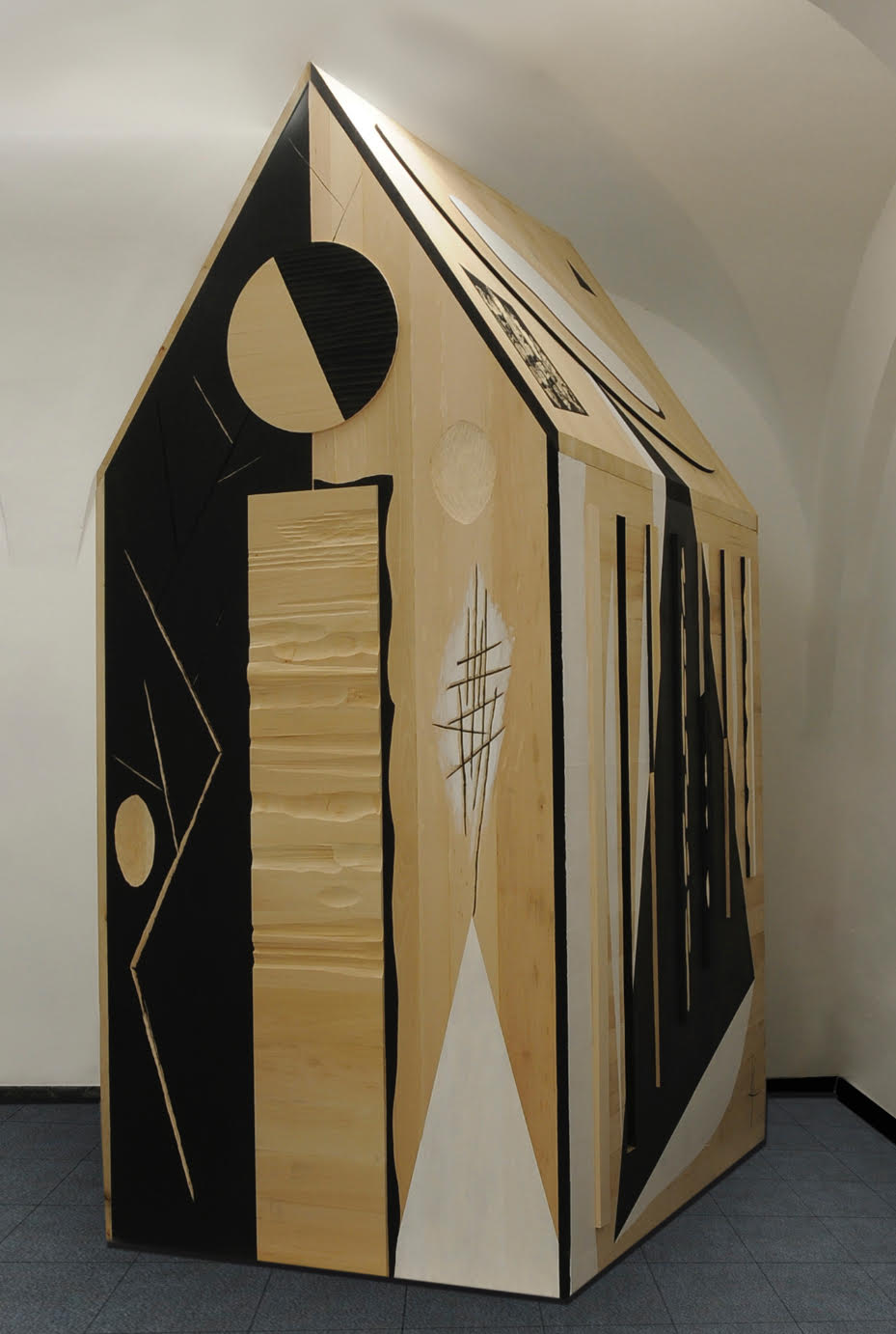 Nelle tre sale che si succedono sono esposti i recentissimi rilevi “Riflessi interni” e l’installazione “+ di 1 Luna x Volta” sui temi di volubilità e ribaltamento. Quest’ultima richiederà la partecipazione attiva del pubblico, chiamato a ‘modificare’ la composizione spostando i tasselli che la compongono. A seguire si trova un rilievo della serie “Natura Umana” 2018, le due strutture aggettanti “Scudo accogliente” 2005 e “Tensione dell’arco” 2005. A conclusione della mostra troviamo due “pagine strappate” 2024, il dittico “Altre prospettive” 2018 e due opere della serie “Stabbed soul” 2007. A concludere la mostra il plastico in legno e pietre “Cattedrale abbandonata” del 2010.