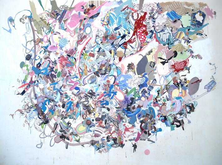 Nel piccolo ma ormai celebre spazio ibrido che si apre periodicamente al pubblico con eventi che mirano ad integrare architettura, design e comunicazione, questa volta è di scena la pittura, anche se in maniera del tutto particolare, confacendosi così allo stile del Salone Gemma. Un unico dipinto di dimensioni enormi, in cui l'infinitamente grande e l'infinitamente piccolo si incontrano in un delirio ludico, dove gli oggetti del mondo esterno, entrati a contatto con la 'volontà soggettiva' dell'artista, si frantumano e ricompongono in una miriade di opportunità semantiche, in un vortice pluricentrico e multidirezionale di creazioni e distruzioni.