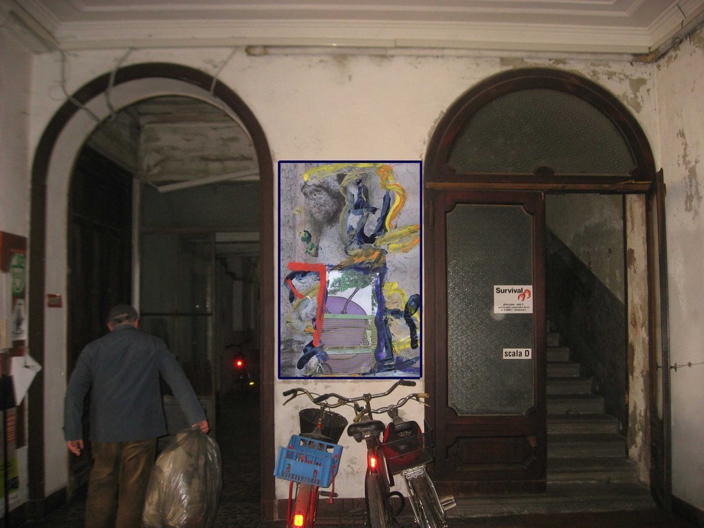 L’installazione si inserisce in Casa Morigi dov’è la Casa di seconda accoglienza per rifugiati politici. Si sviluppa a partire dall’ingresso tramite un percorso a più livelli pittorici e scultorei nell’interno. Introduce un Raddoppio di spazio e di luogo con lo strumento del linguaggio artistico-scientifico e concettuale. Ha l’intento di produrre la soglia della contemporaneità culturale in un luogo della tradizione milanese nella stretta relazione con il progetto di ospitalità per rifugiati politici.