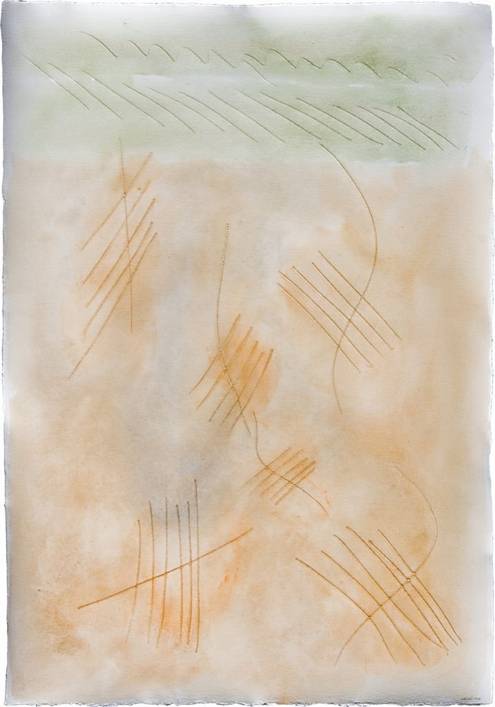 Nella più recente esperienza artistica, sempre su carta trasparente, il segno geometrico, con il rigore costruttivo, viene abbandonato per una espressione più libera che traduce, attraverso l’uso di pastelli colorati e incisioni appena avvertibili, il libero imprevedibile moto della coscienza, in una interpretazione tutta lirico musicale. Oggi questo linguaggio si arricchisce sulla carta di toni e di gesti acquerellati acquistando una più intima densità di significati