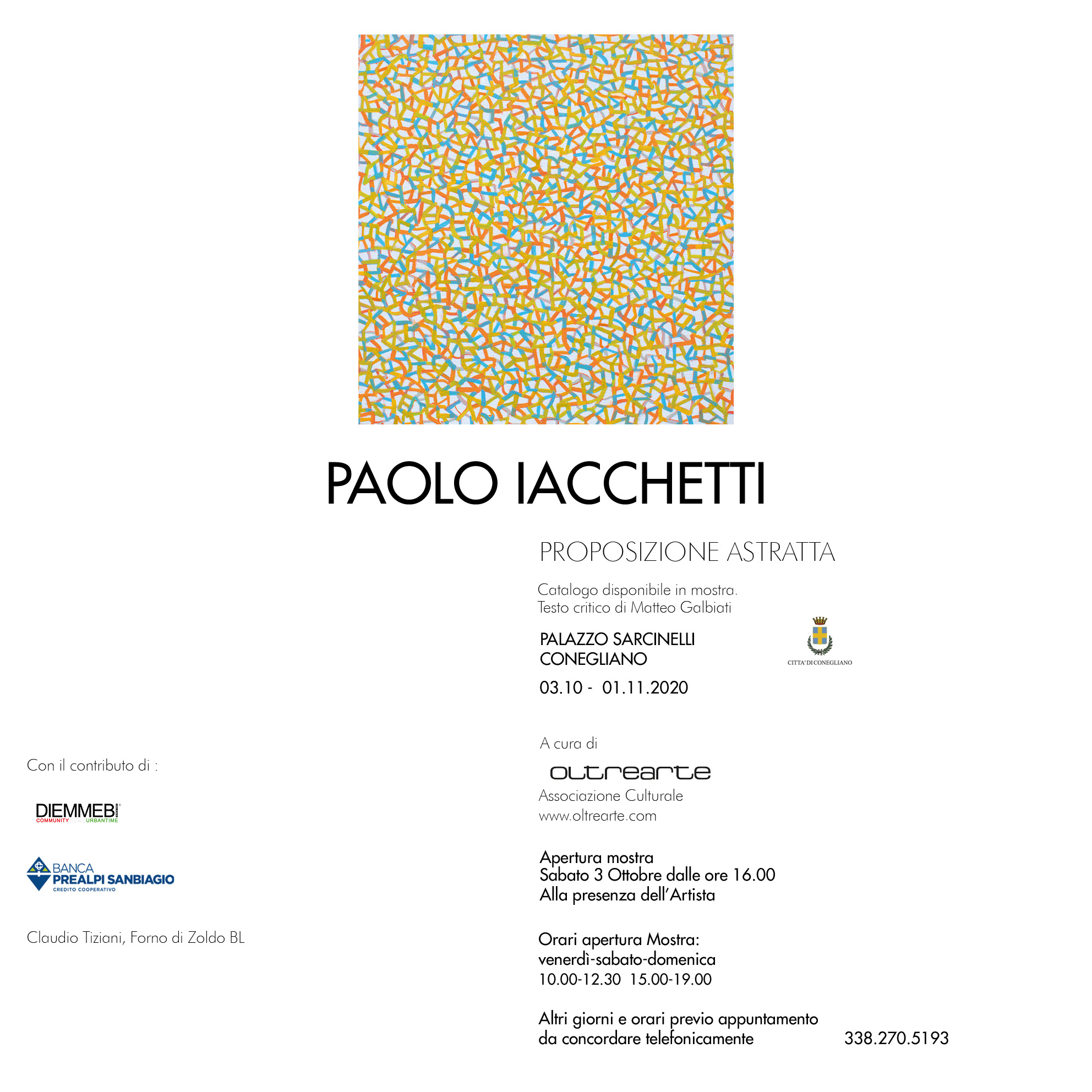 Dal 3 Ottobre al 1 Novembre, presso gli spazi di Palazzo Sarcinelli Conegliano, viene dedicata una importante mostra all’artista Paolo Iacchetti (Milano 1953).