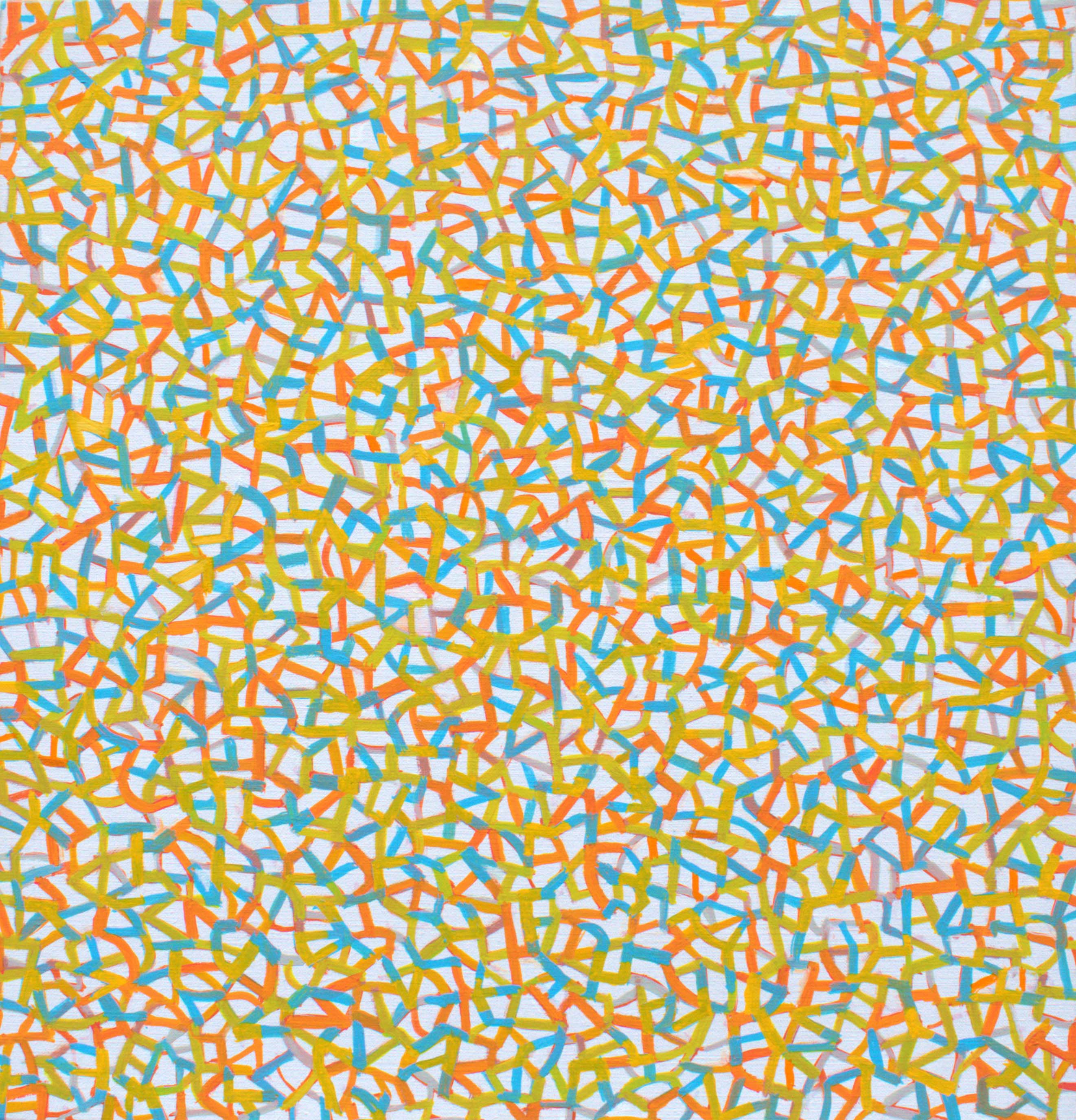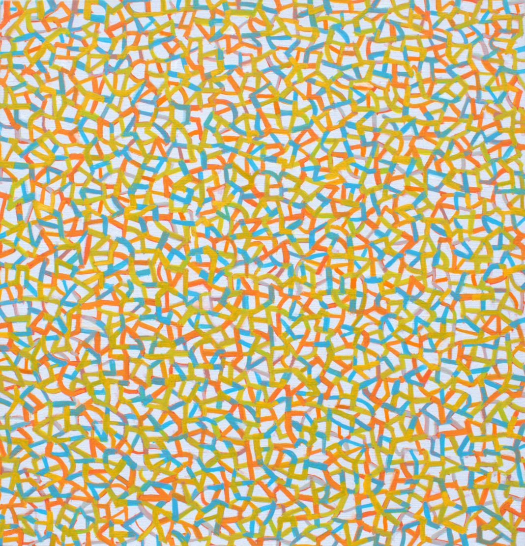 Fin dagli anni ’80, Paolo Iacchetti ha incentrato la sua indagine artistica nell’ambito della pittura aniconica, approfondendo la sua personale ricerca sulla funzione del colore e della linea sulla superficie del quadro.