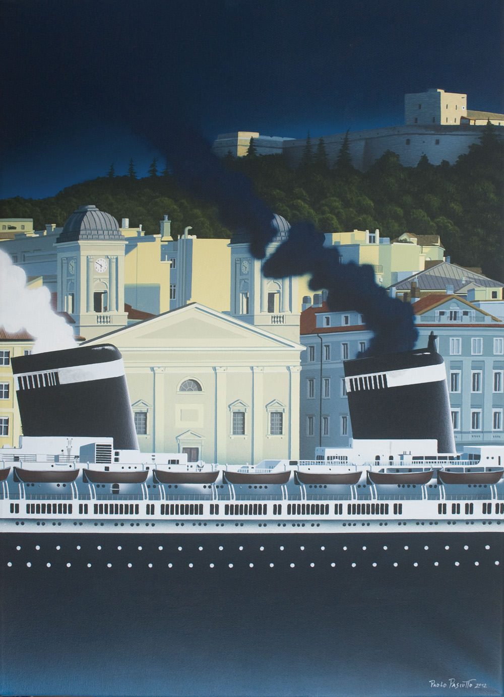 Era Trieste è un omaggio alla Trieste degli anni ’50 e ’60, che unisce l’amore dell’artista per i paesaggi urbani all’interesse per il design vintage, la storia contemporanea e la fantascienza.