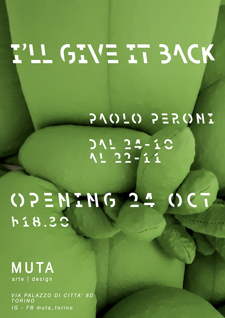 Muta presenta “I’ll Give It Back”, una mostra di Paolo Peroni (1984), artista visivo attivo a Torino dal 2012, il cui lavoro si sviluppa principalmente attraverso la scultura e l’installazione.